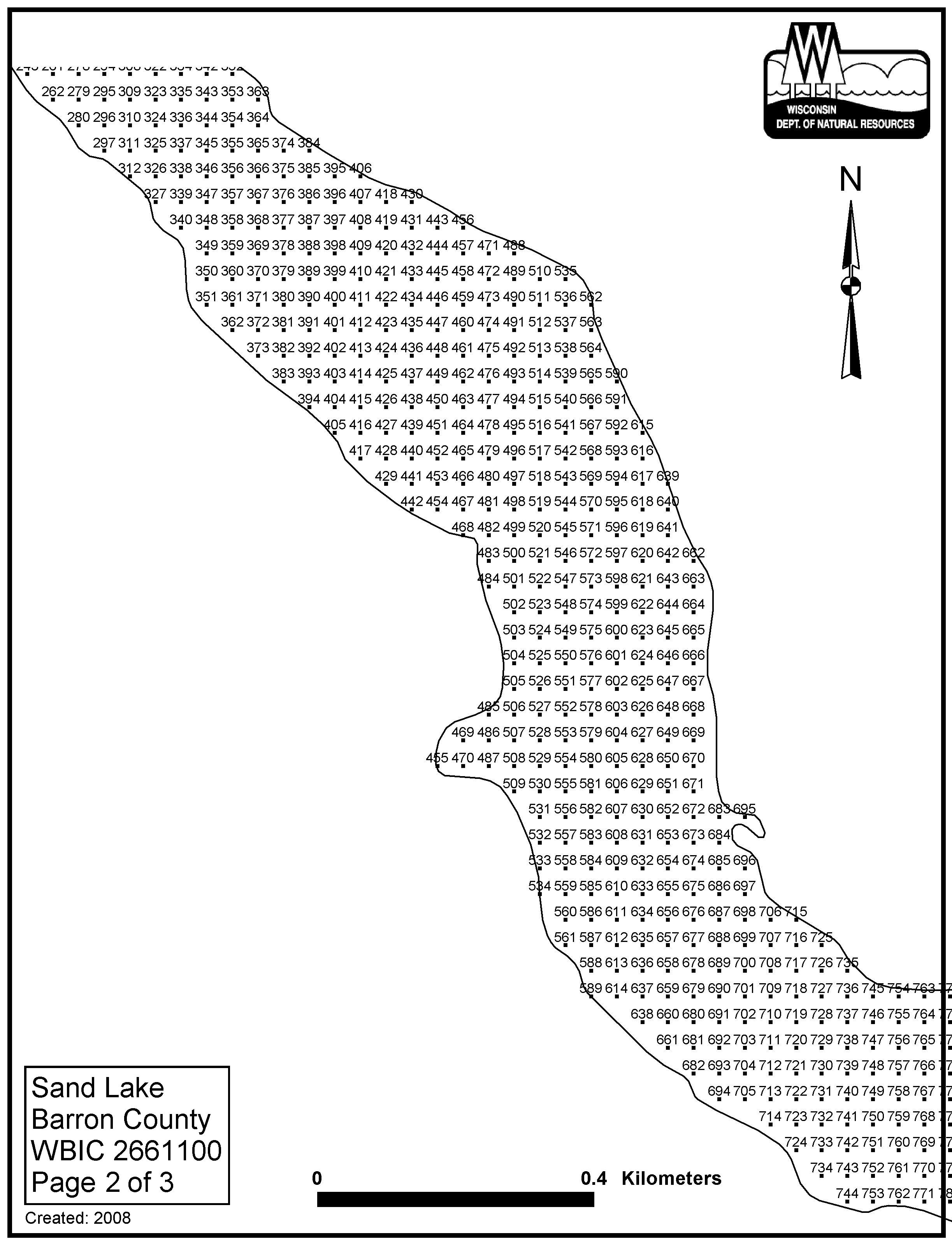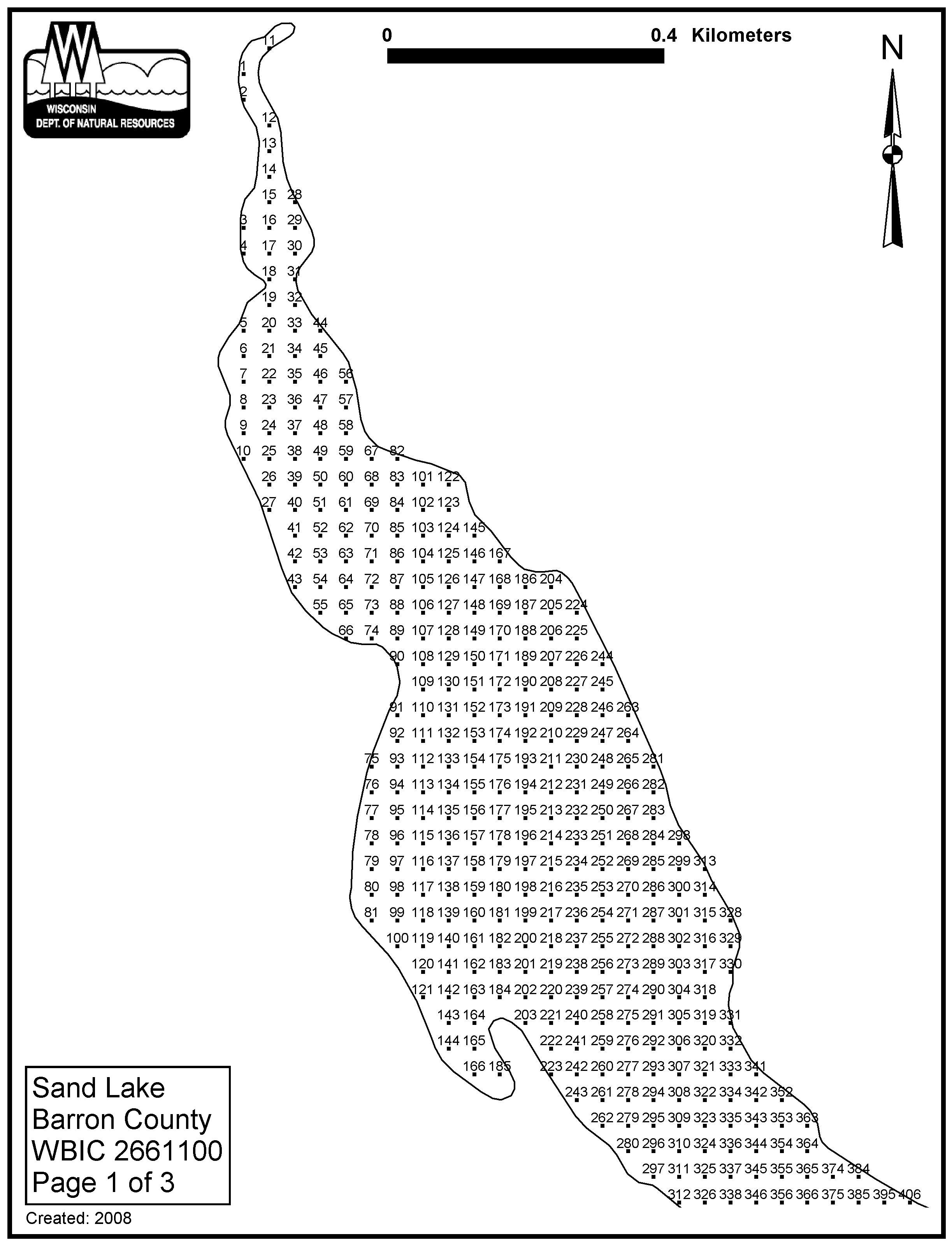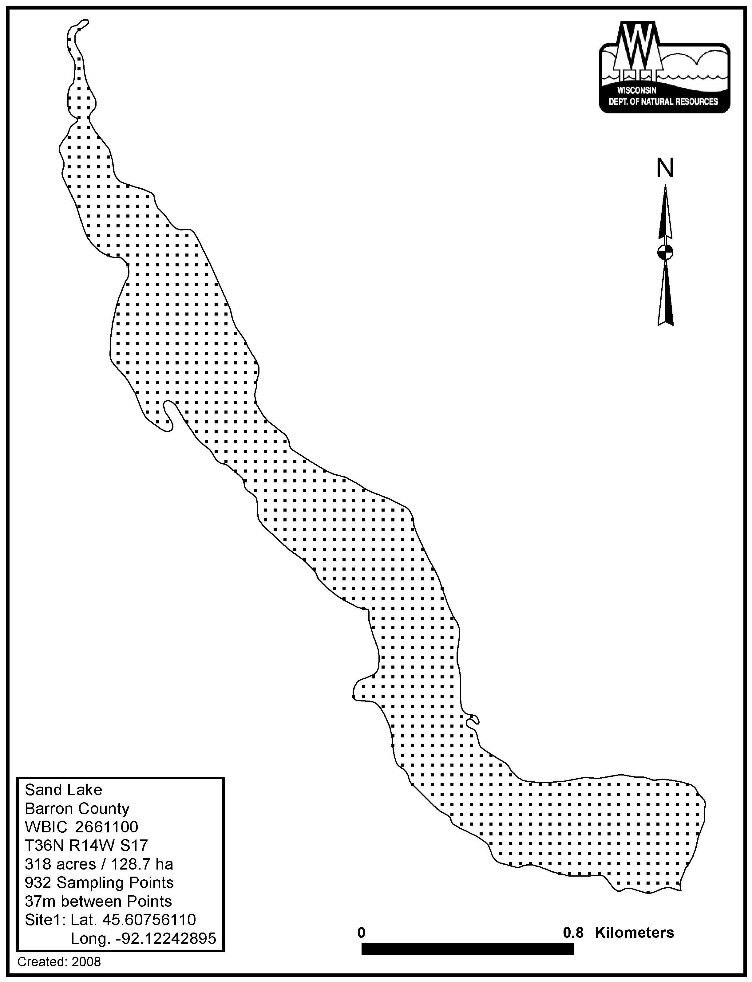 Sand Lake, Barron County - Aquatic Plant Sampling Map (2)(37 mpts)