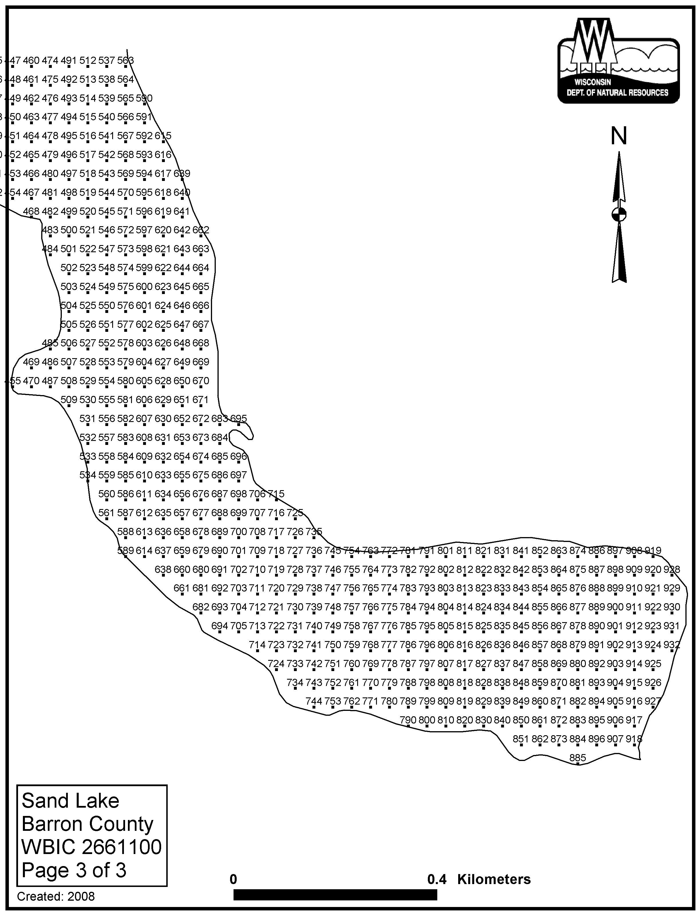 Sand Lake, Barron County - Aquatic Plant Sampling Map (3)(37 mpts)