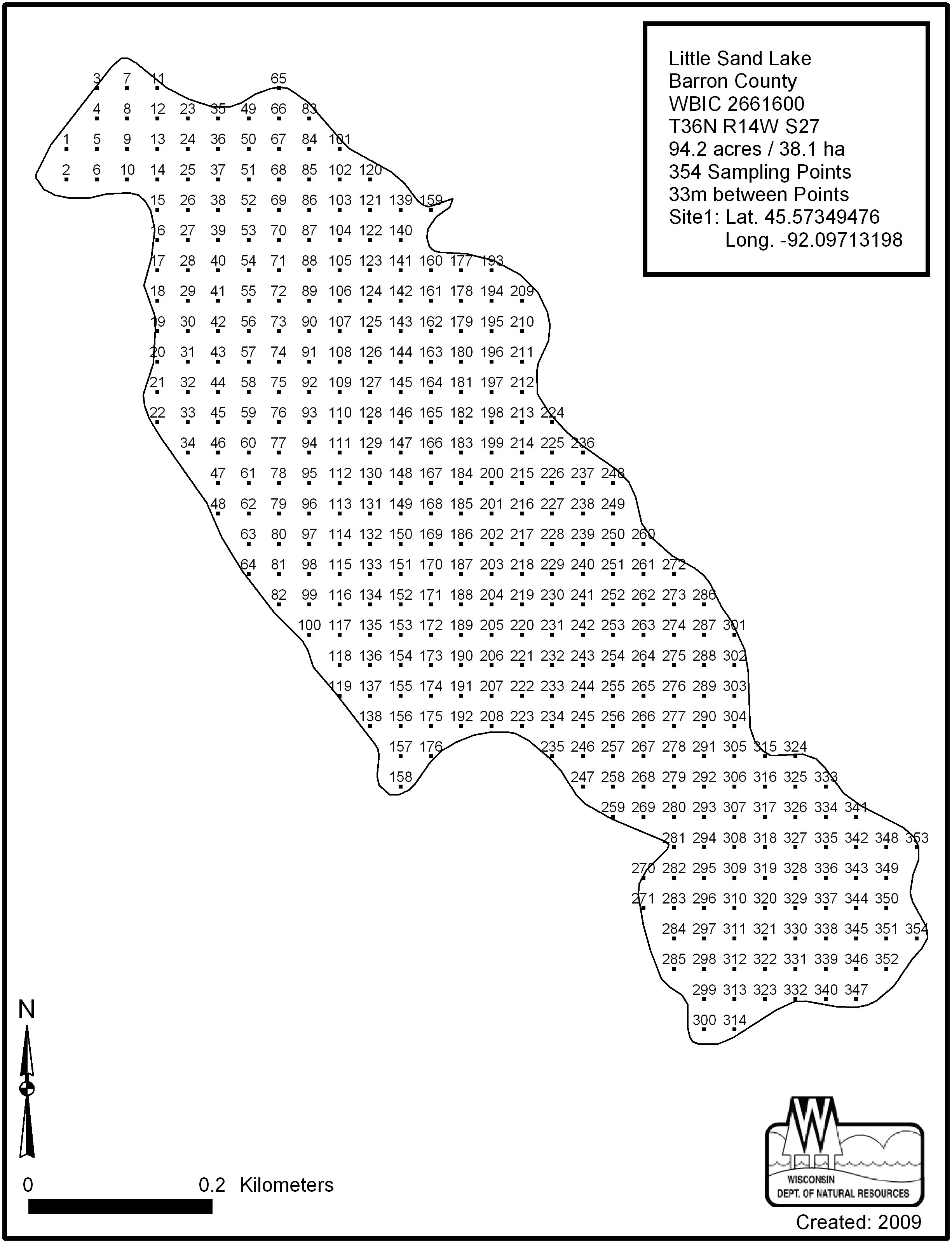 Little Sand Lake, Barron County - Aquatic Plant Sampling Map (33 mpts)
