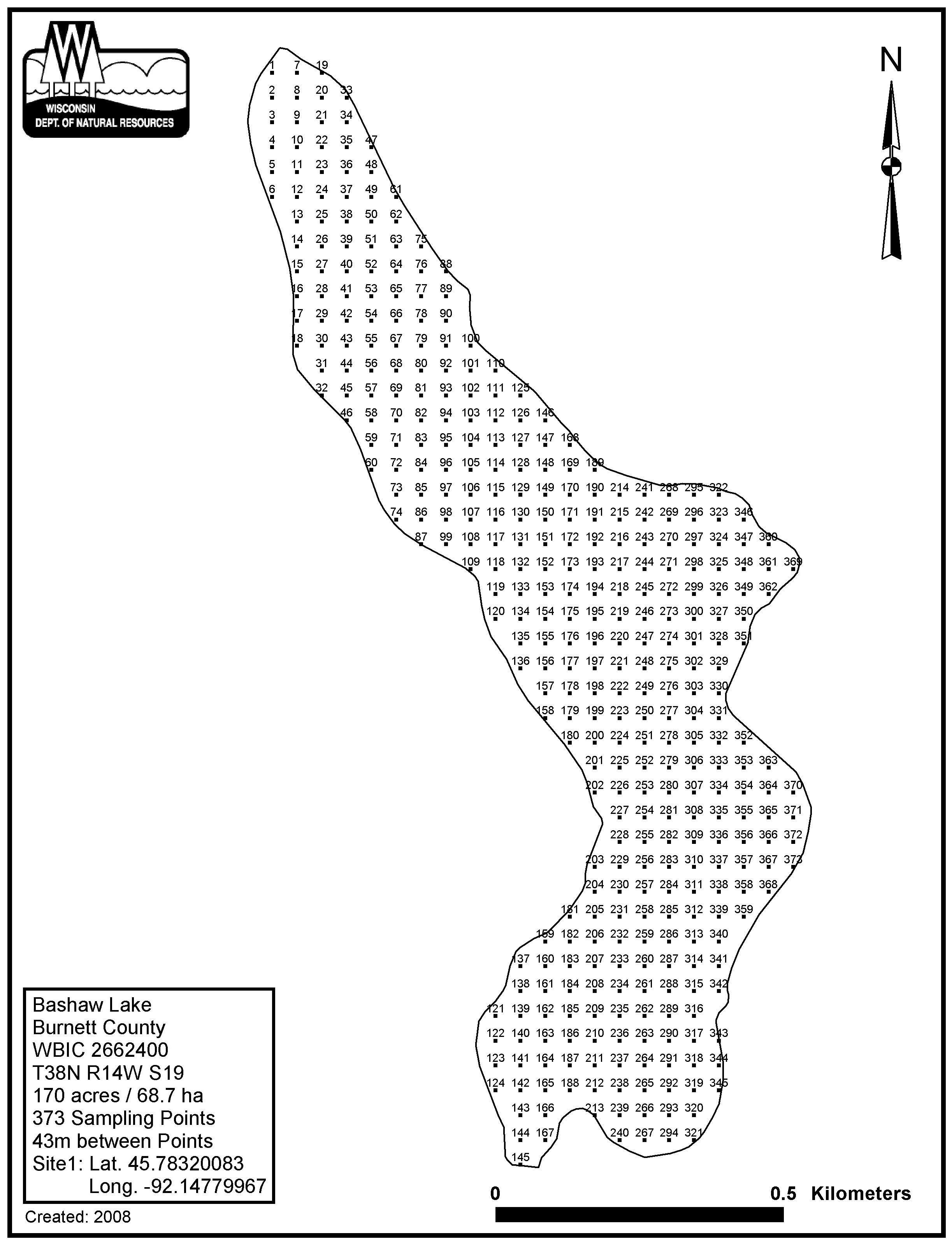 Bashaw Lake, Burnett County - Aquatic Plant Sampling Map (43 mpts)