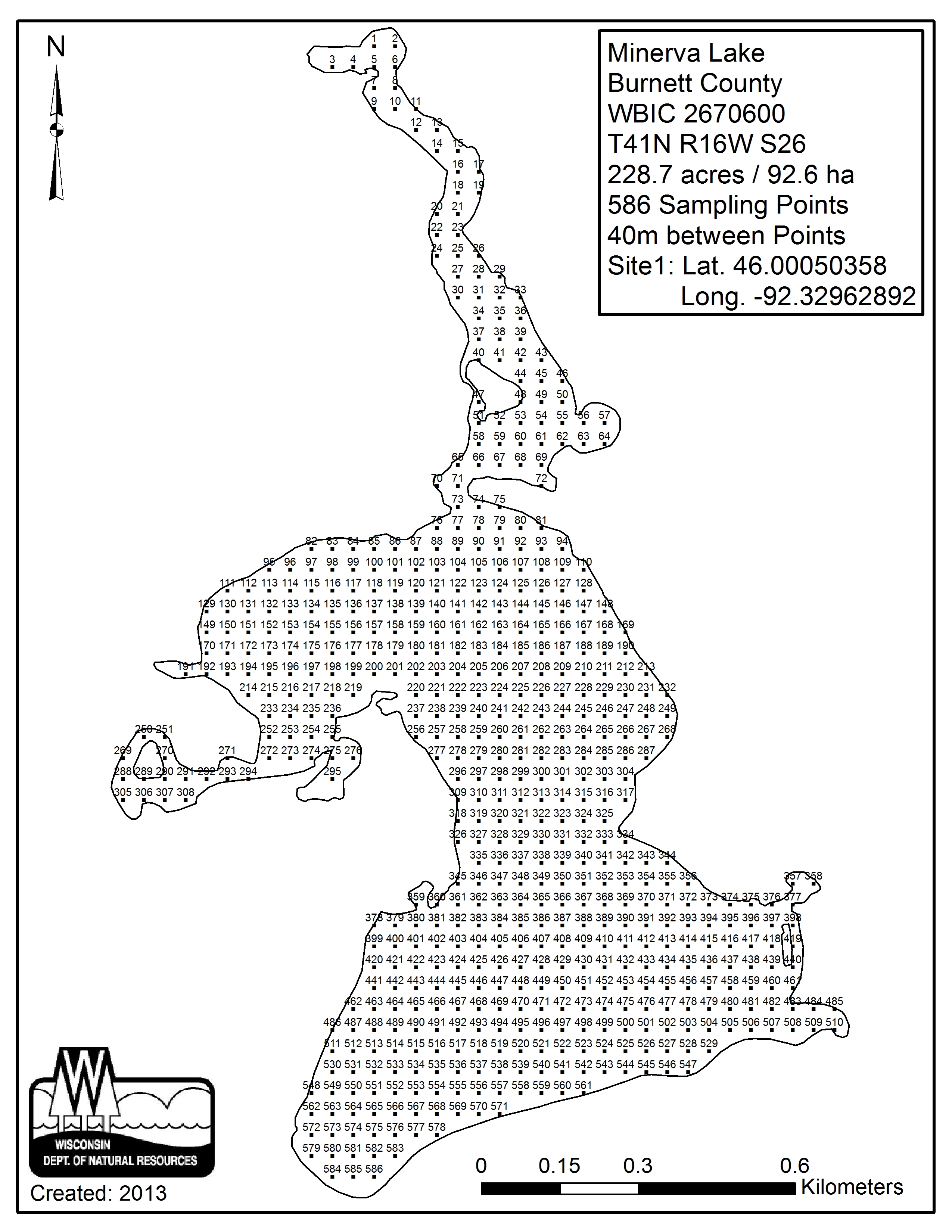 Minerva Lake, Burnett County - Aquatic Plant Sampling Map (40 mpts)