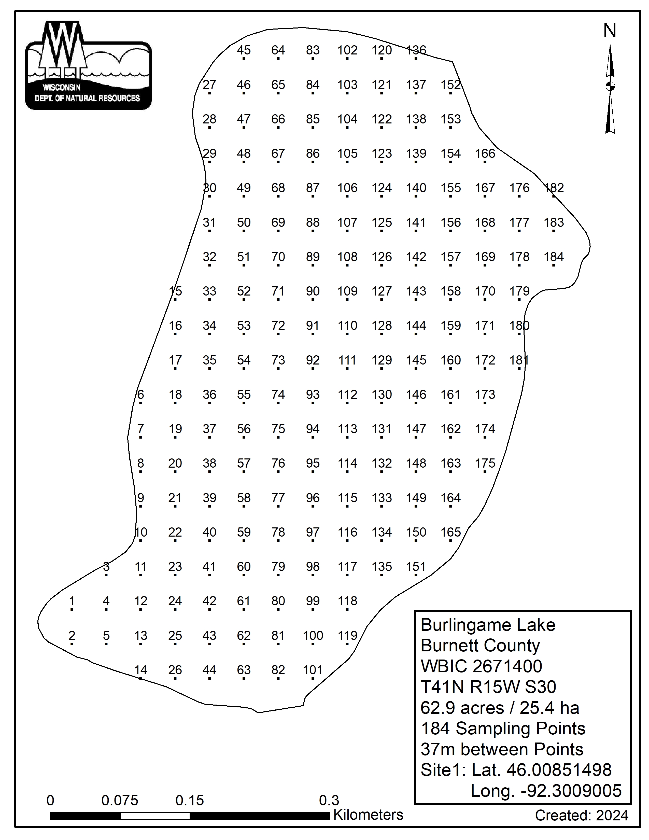 Burlingame Lake, Burnett County - Aquatic Plant Sampling Map (37 mpts)