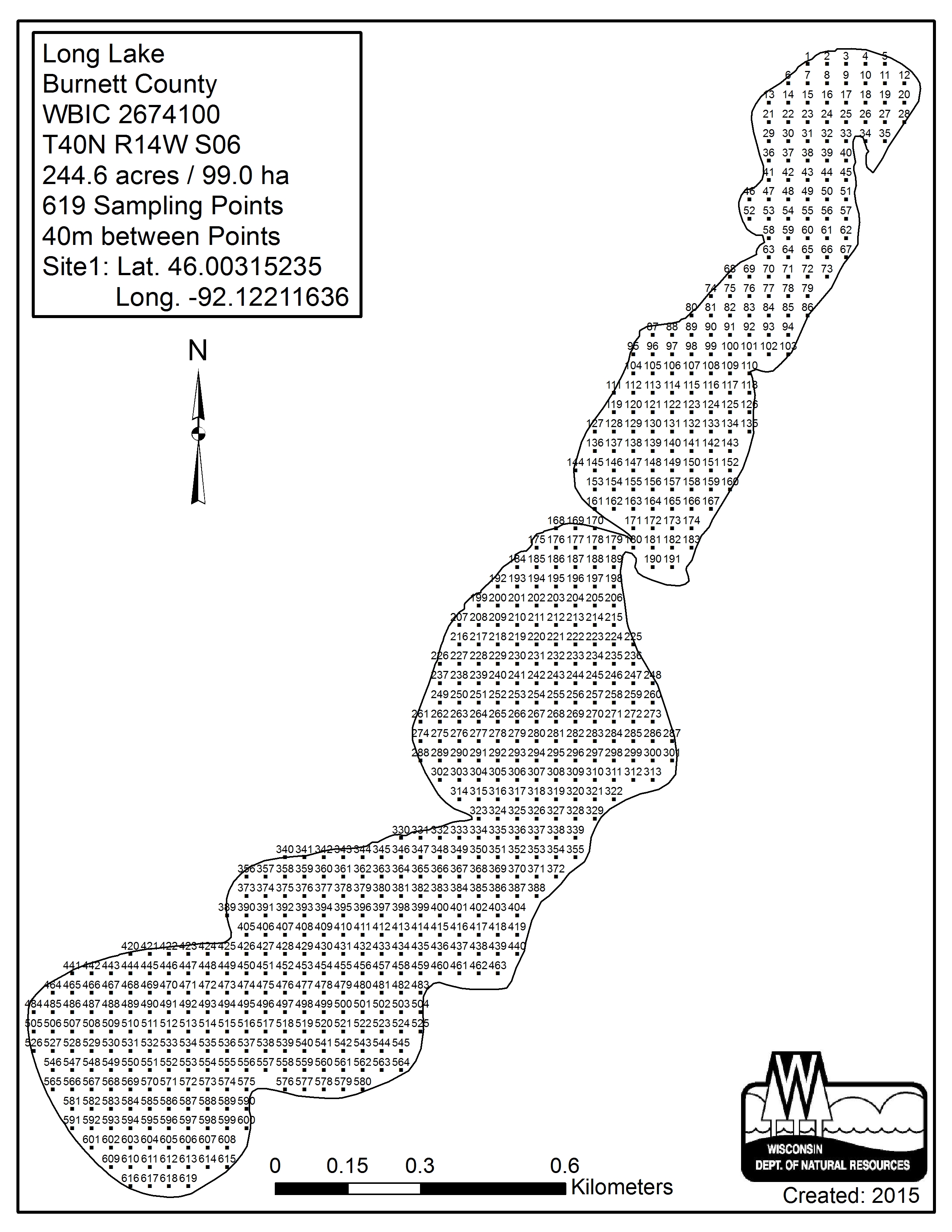 Long Lake, Burnett County - Aquatic Plant Sampling Map (40 mpts)