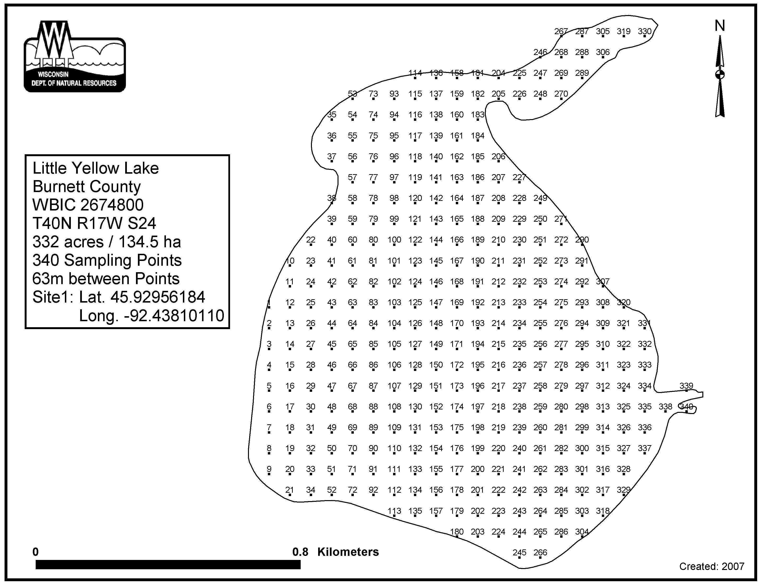 Little Yellow Lake, Burnett County - Aquatic Plant Sampling Map (63 mpts)