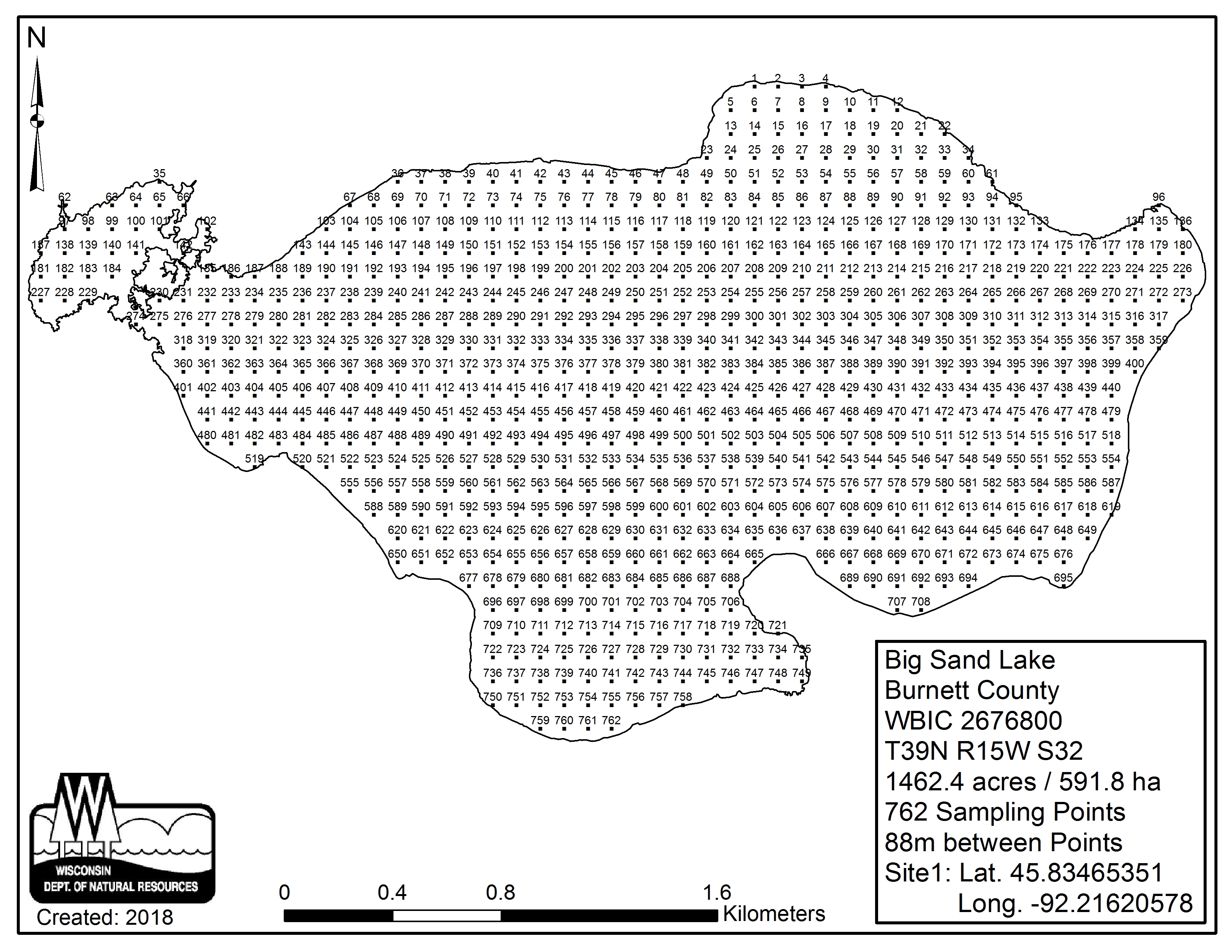 Big Sand Lake, Burnett County - Aquatic Plant Sampling Map (88 mpts)