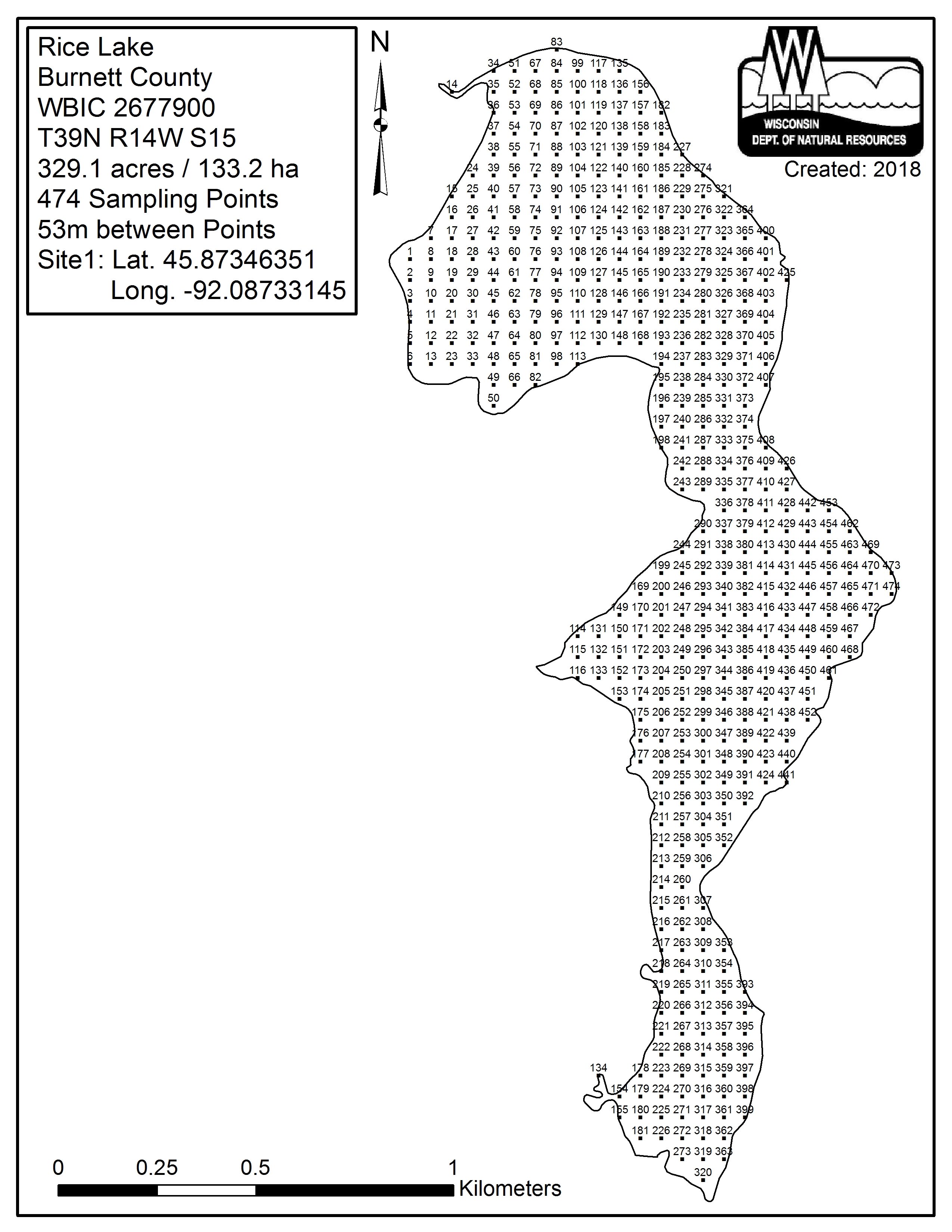 Rice Lake, Burnett County - Aquatic Plant Sampling Map (53 mpts)
