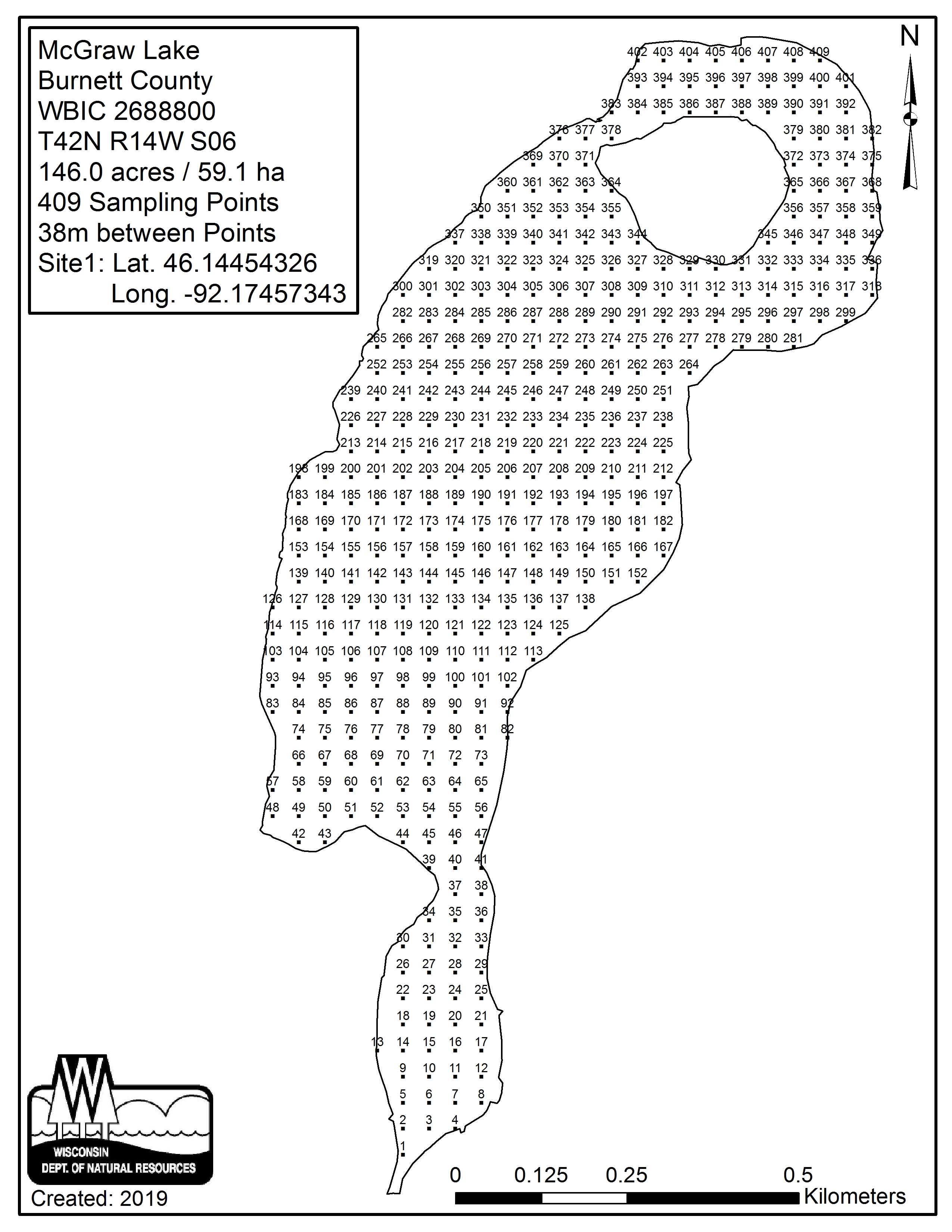 McGraw Lake, Burnett County - Aquatic Plant Sampling Map (38 mpts)