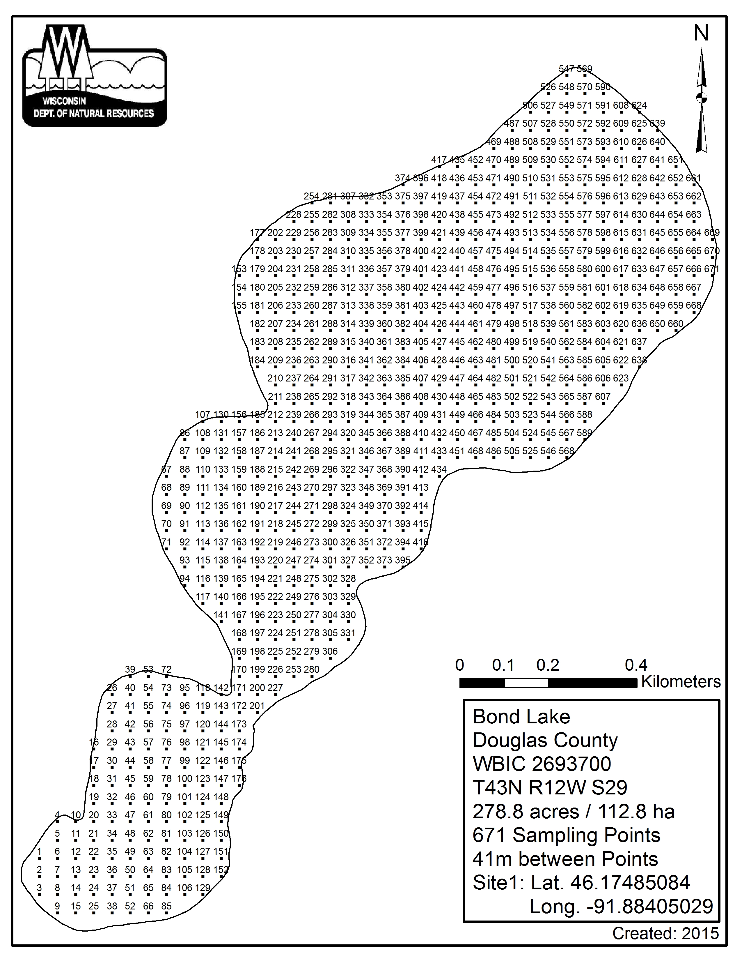 Bond Lake, Douglas County - Aquatic Plant Sampling Map (41 mpts)