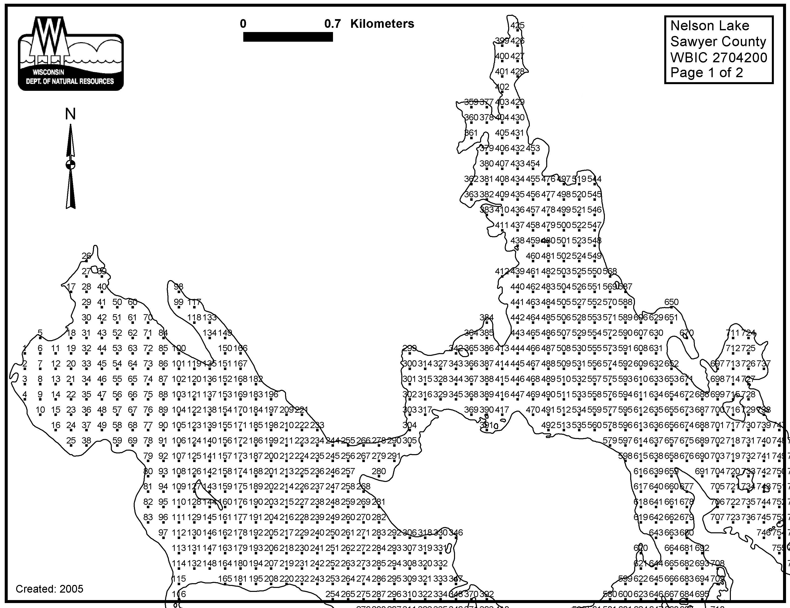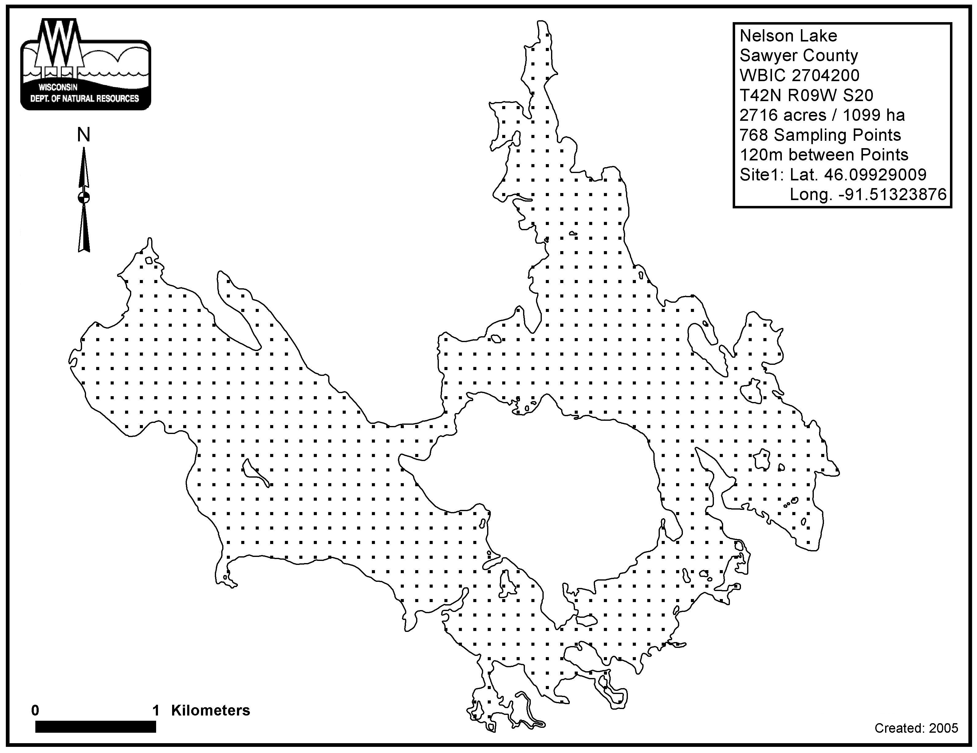Nelson Lake (Totagatic Flow), Sawyer County - Aquatic Plant Sampling Map (1)(120 mpts)
