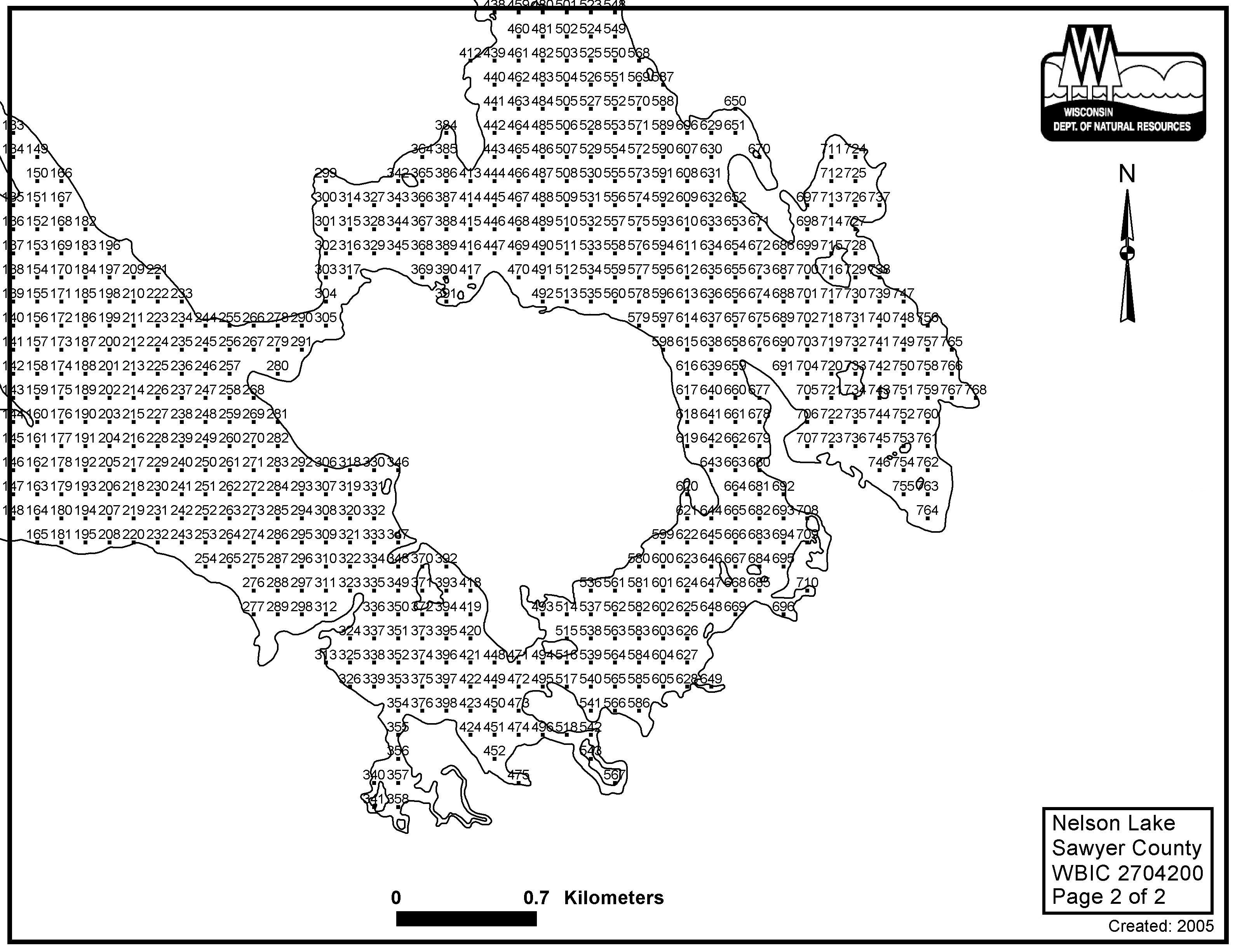 Nelson Lake (Totagatic Flow), Sawyer County - Aquatic Plant Sampling Map (2)(120 mpts)