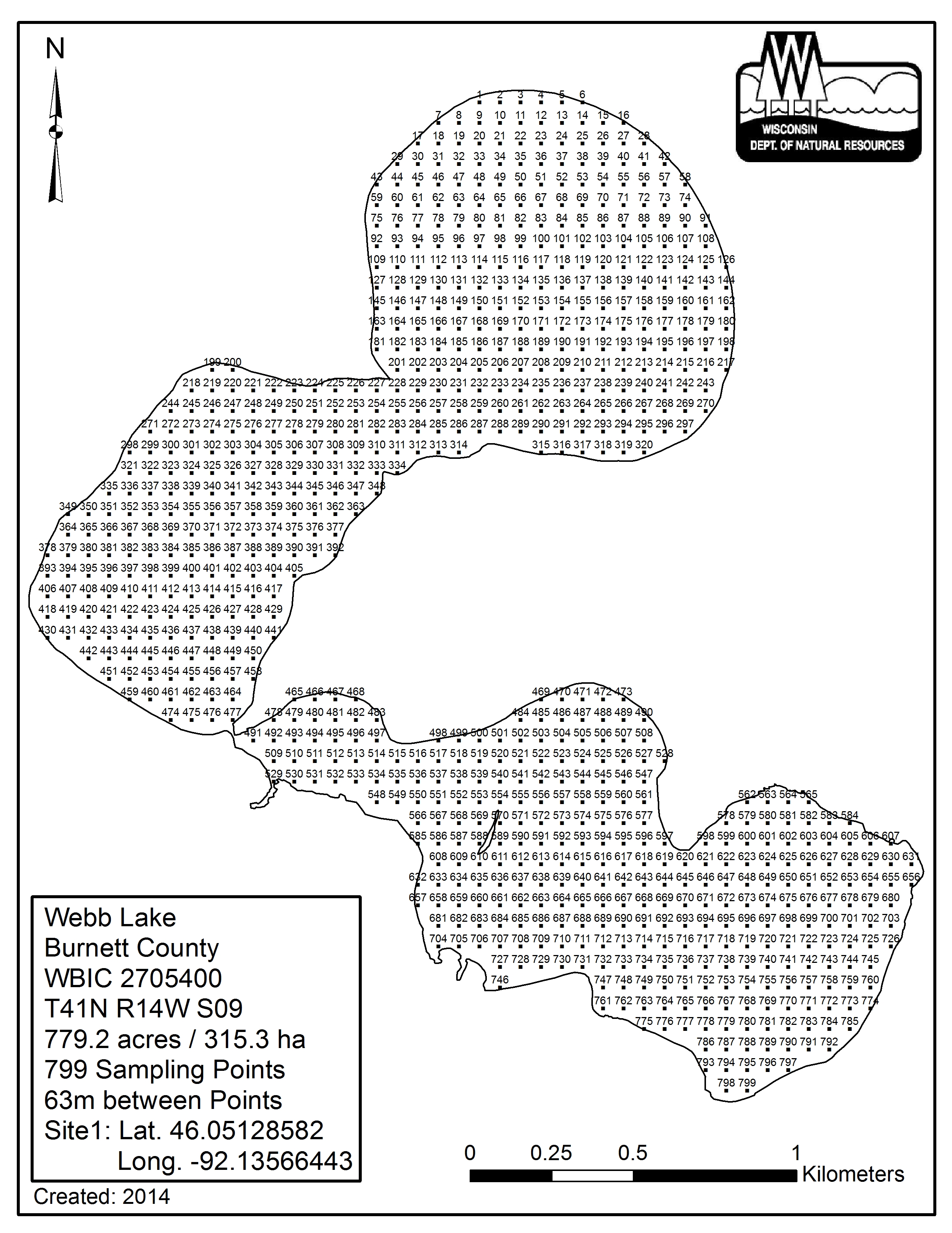 Webb Lake, Burnett County - Aquatic Plant Sampling Map (63 mpts)