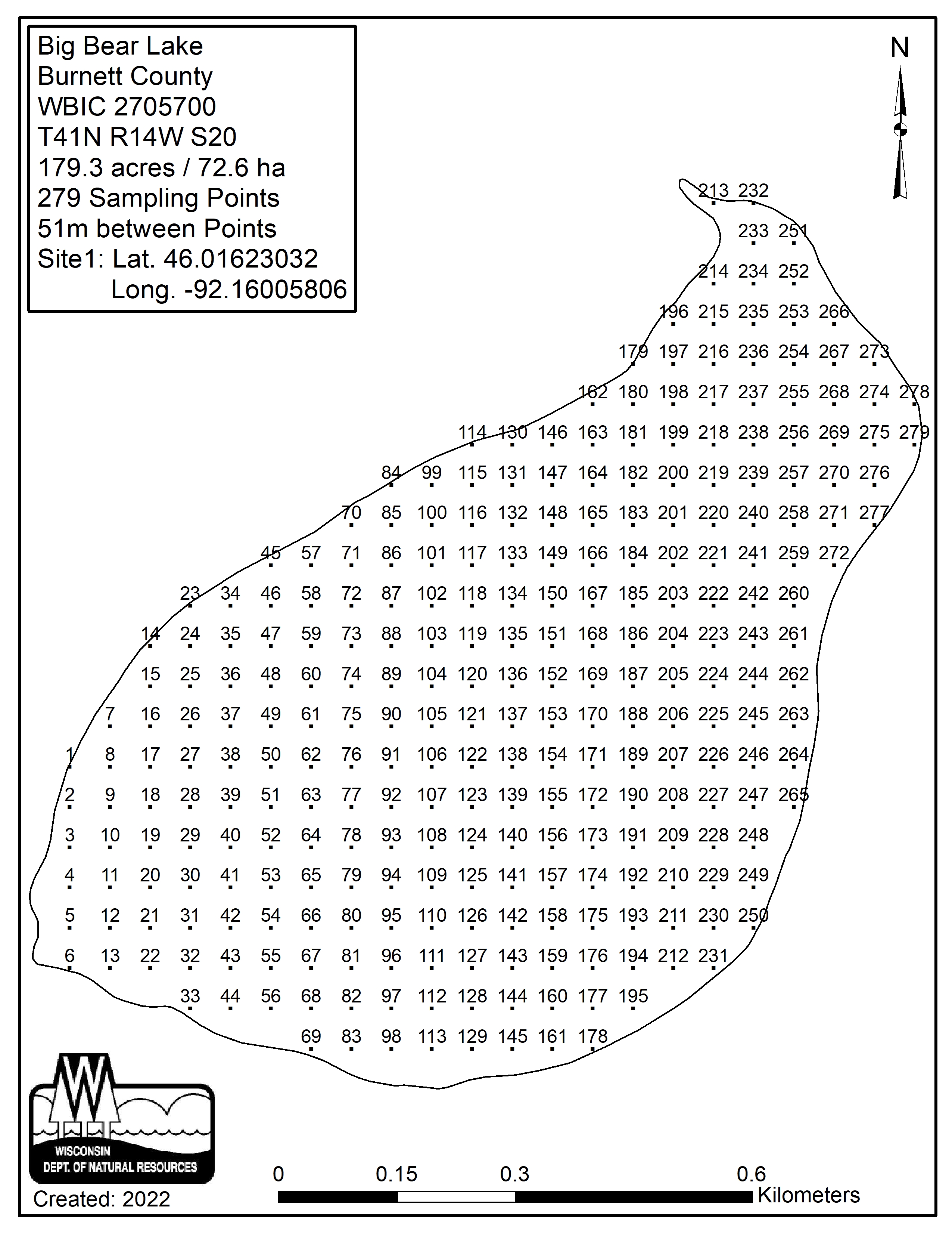 Big Bear Lake, Burnett County - Aquatic Plant Sampling Map (51 mpts)