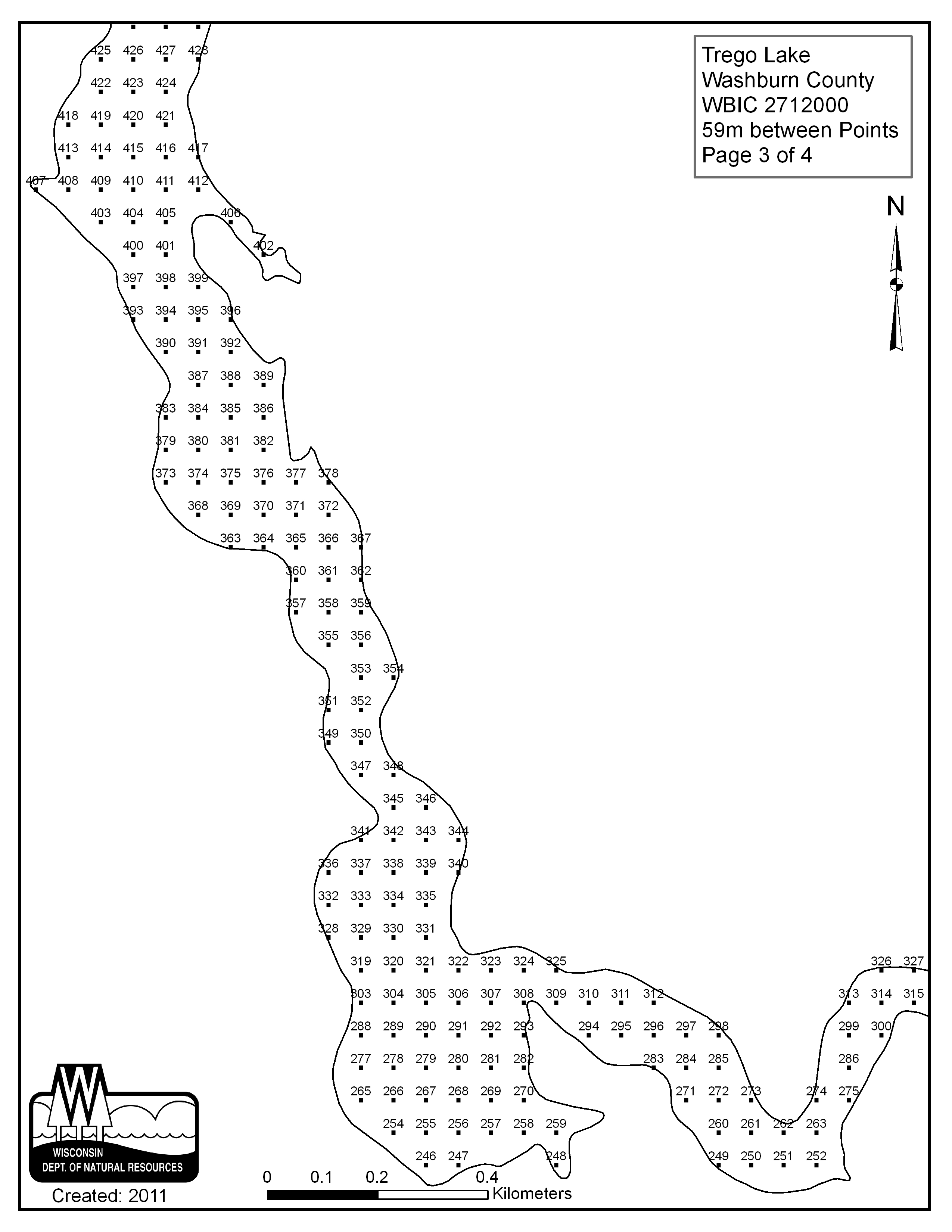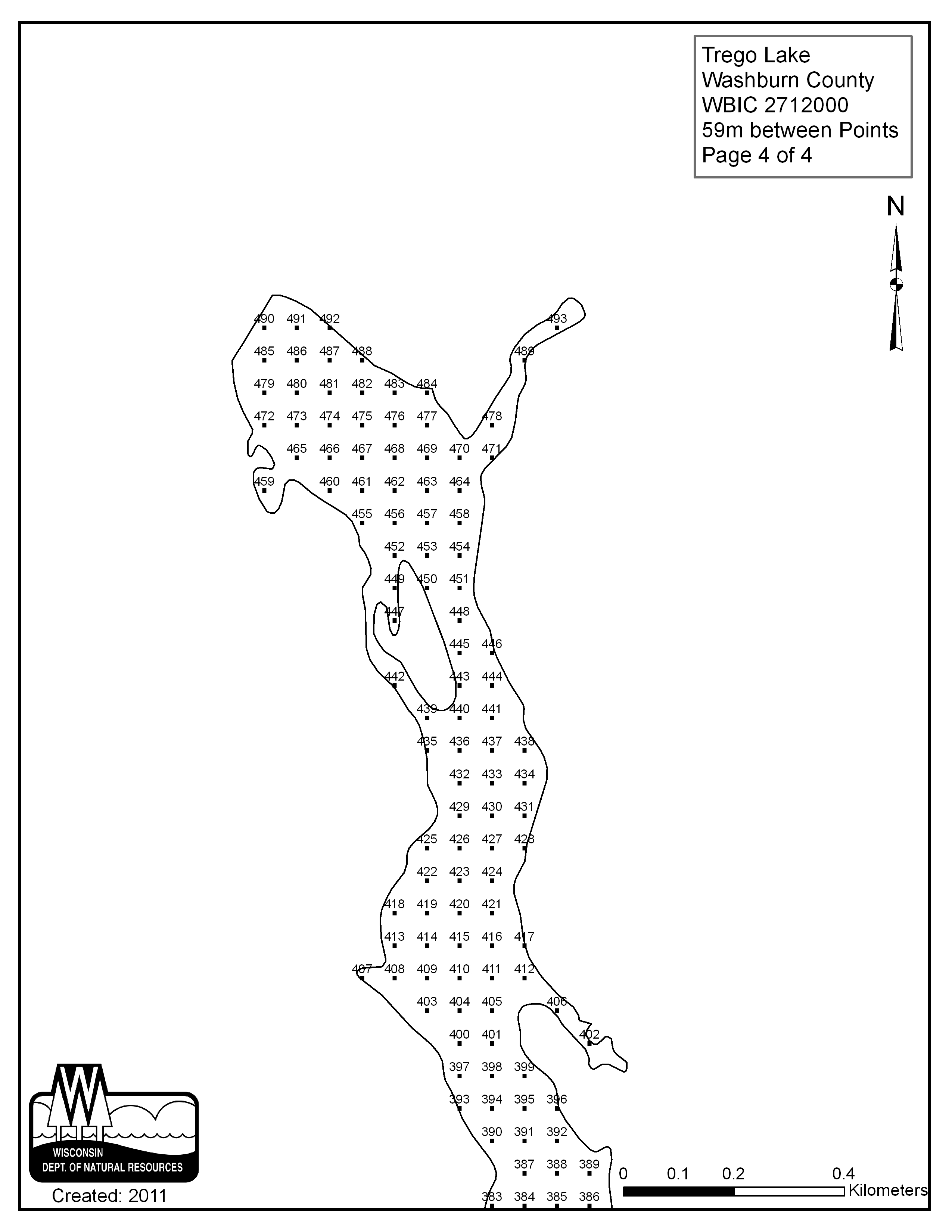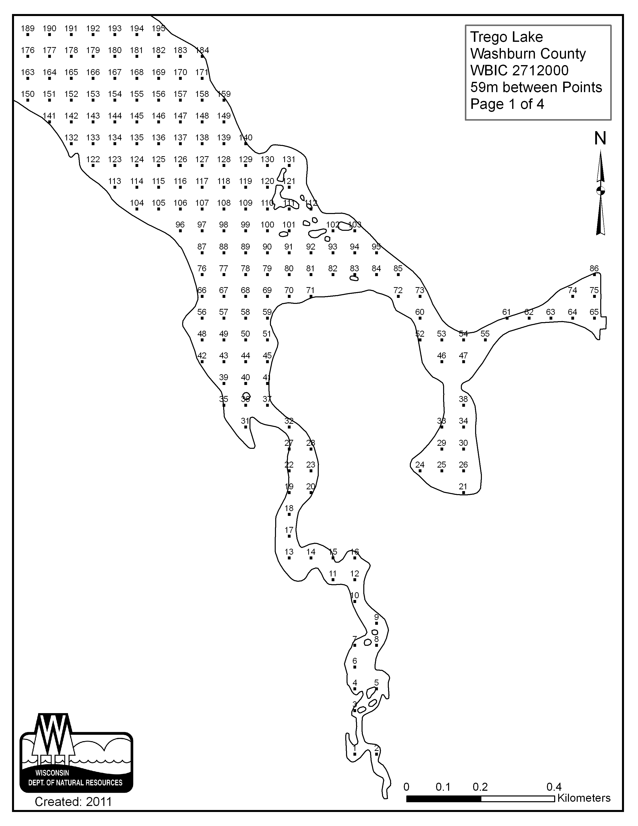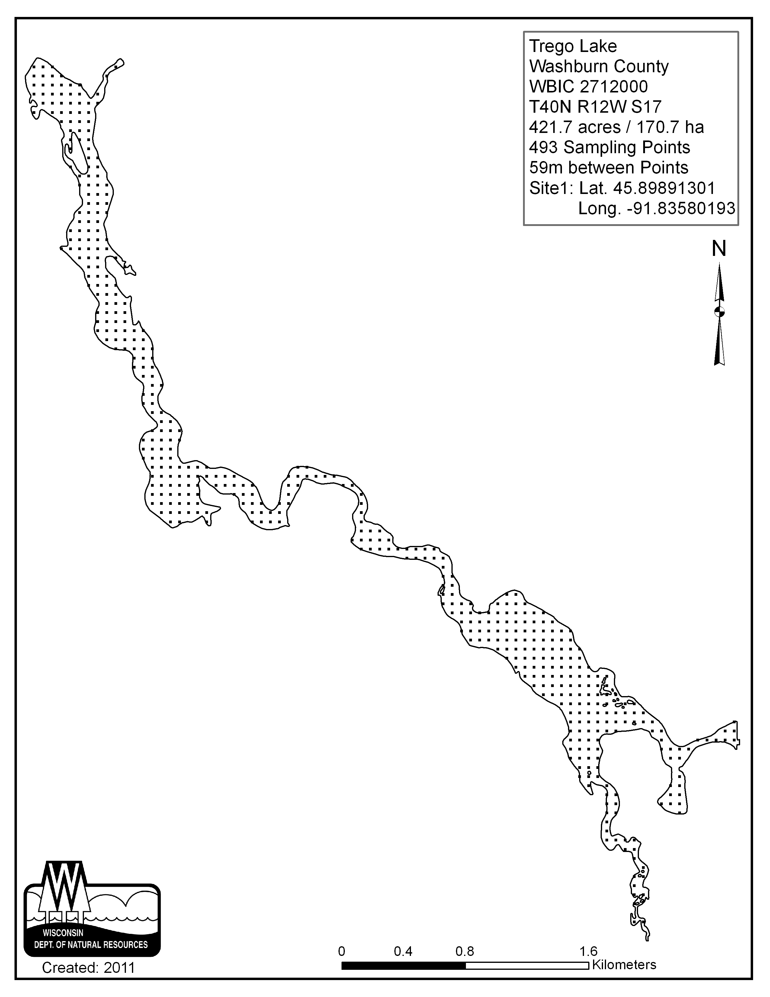 Trego Lake, Washburn County - Aquatic Plant Sampling Map (4)(59 mpts)