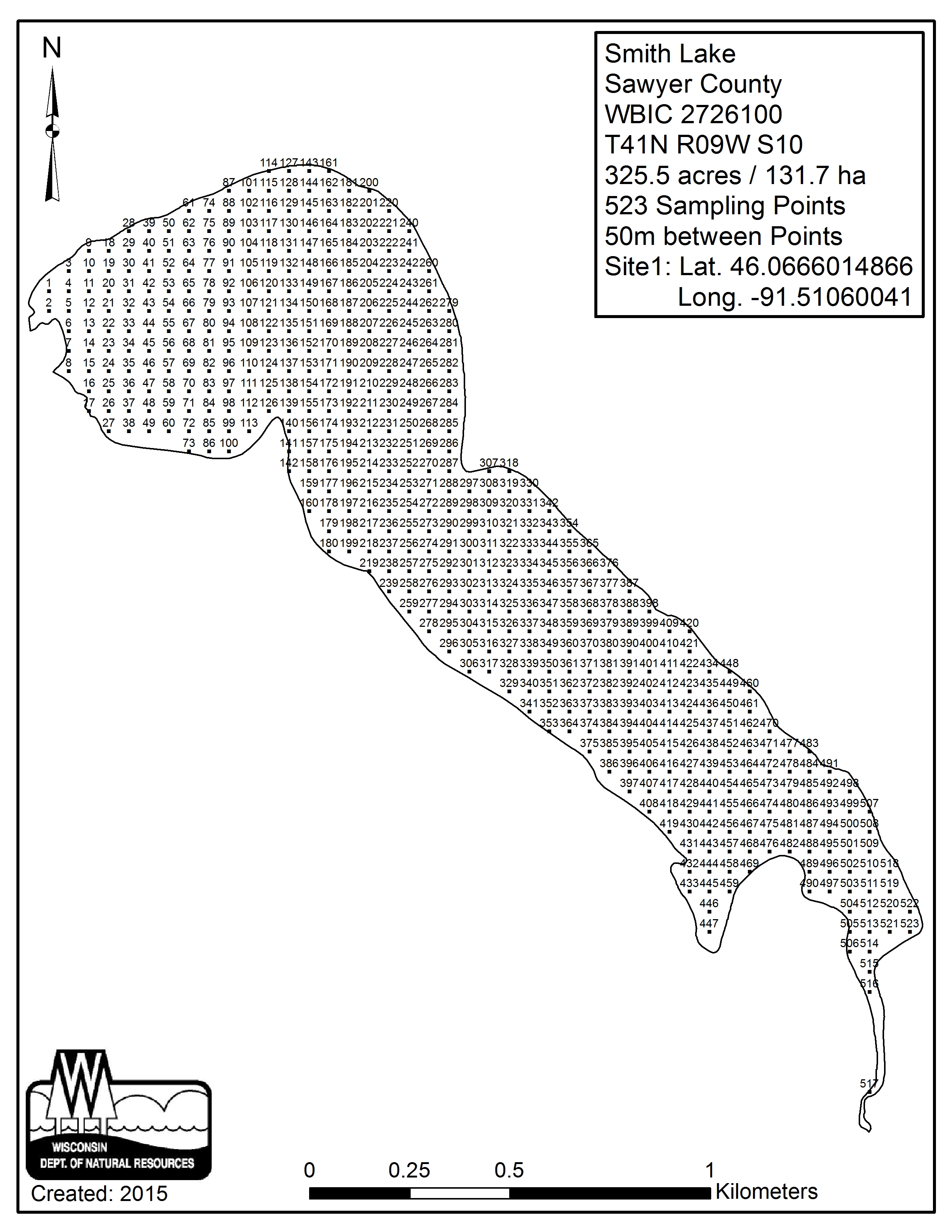 Smith Lake, Sawyer County - Aquatic Plant Sampling Map (50 mpts)