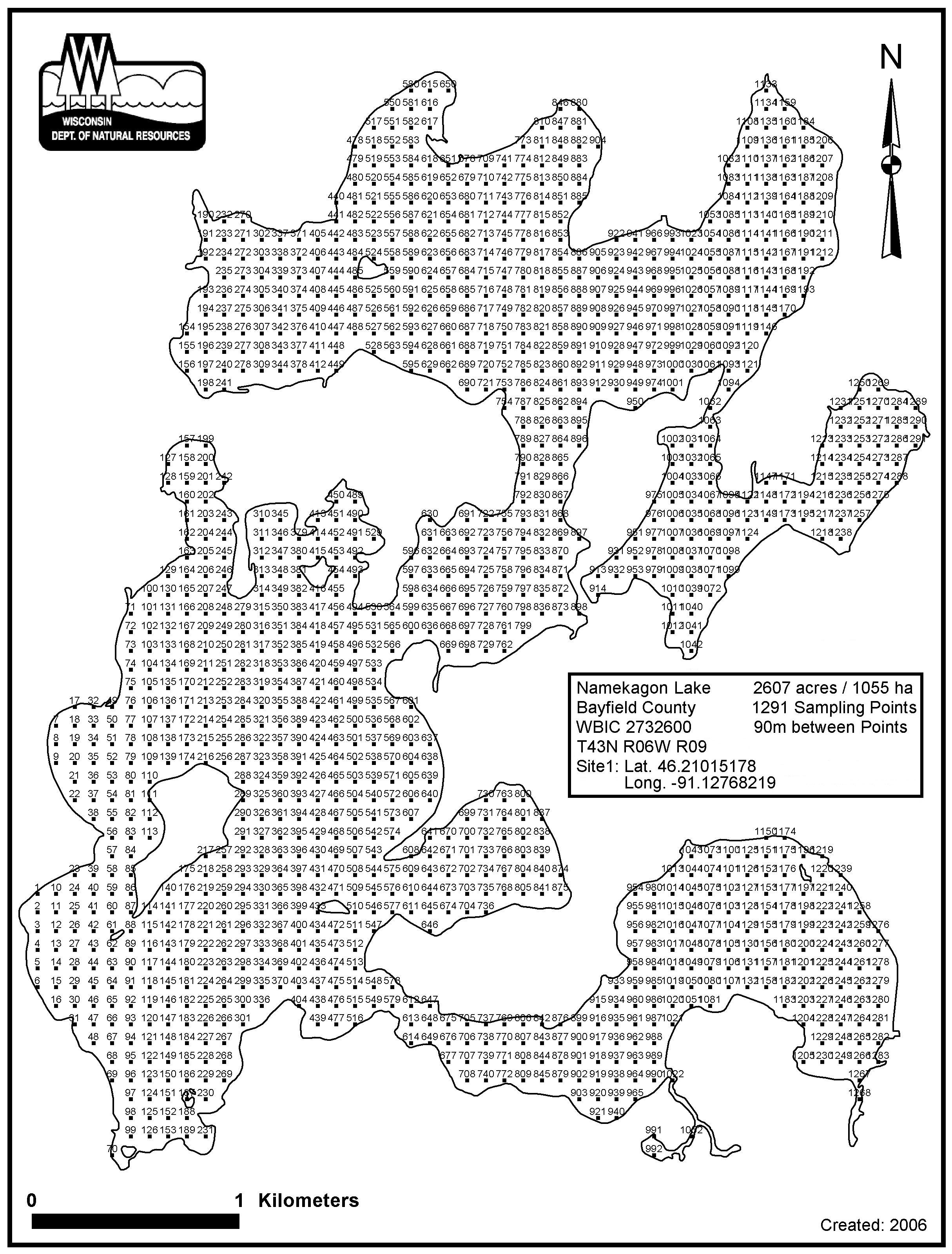 Namekagon Lake, Bayfield County - Aquatic Plant Sampling Map (2)(90 mpts)