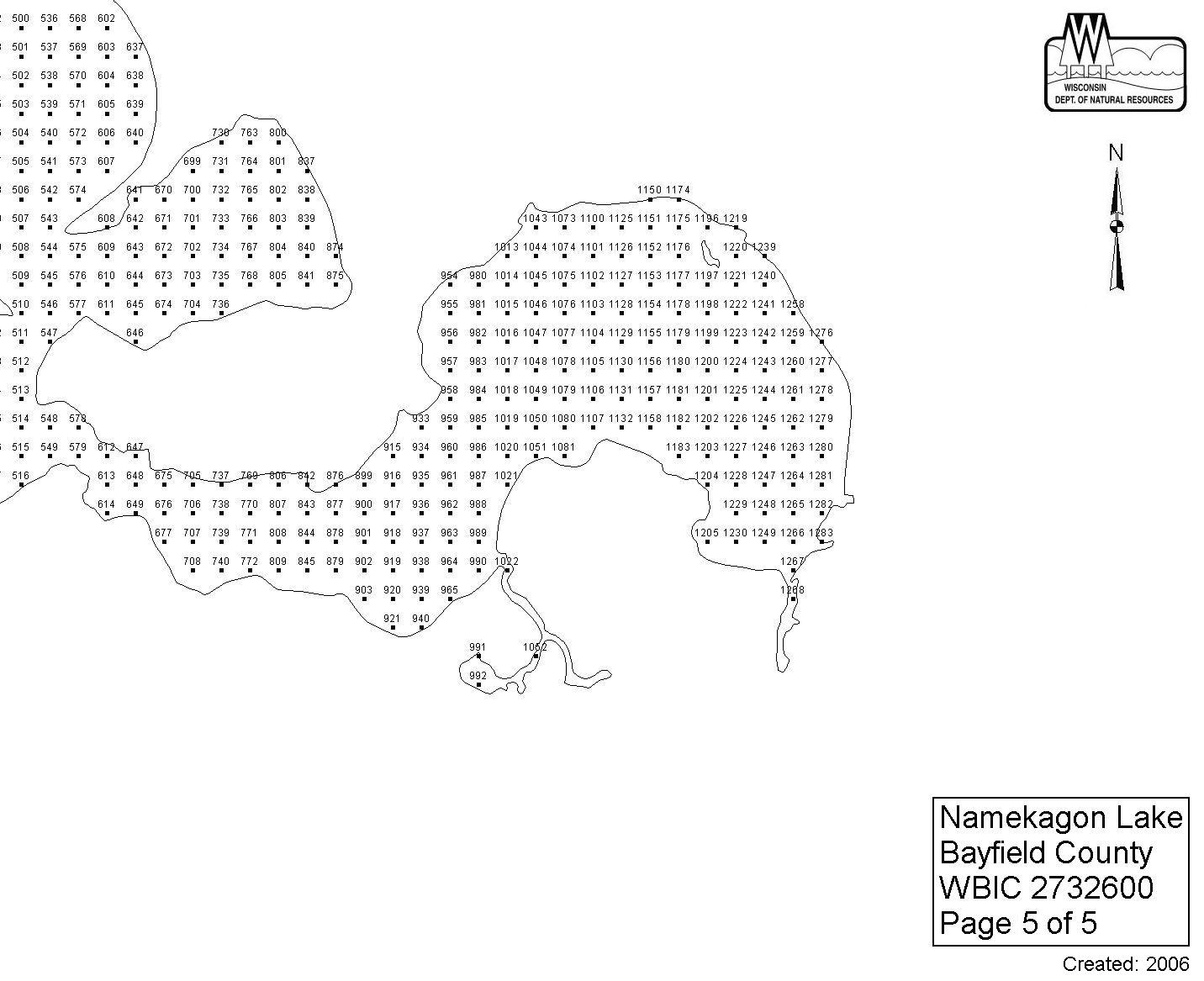 Namekagon Lake, Bayfield County - Aquatic Plant Sampling Map (5)(90 mpts)