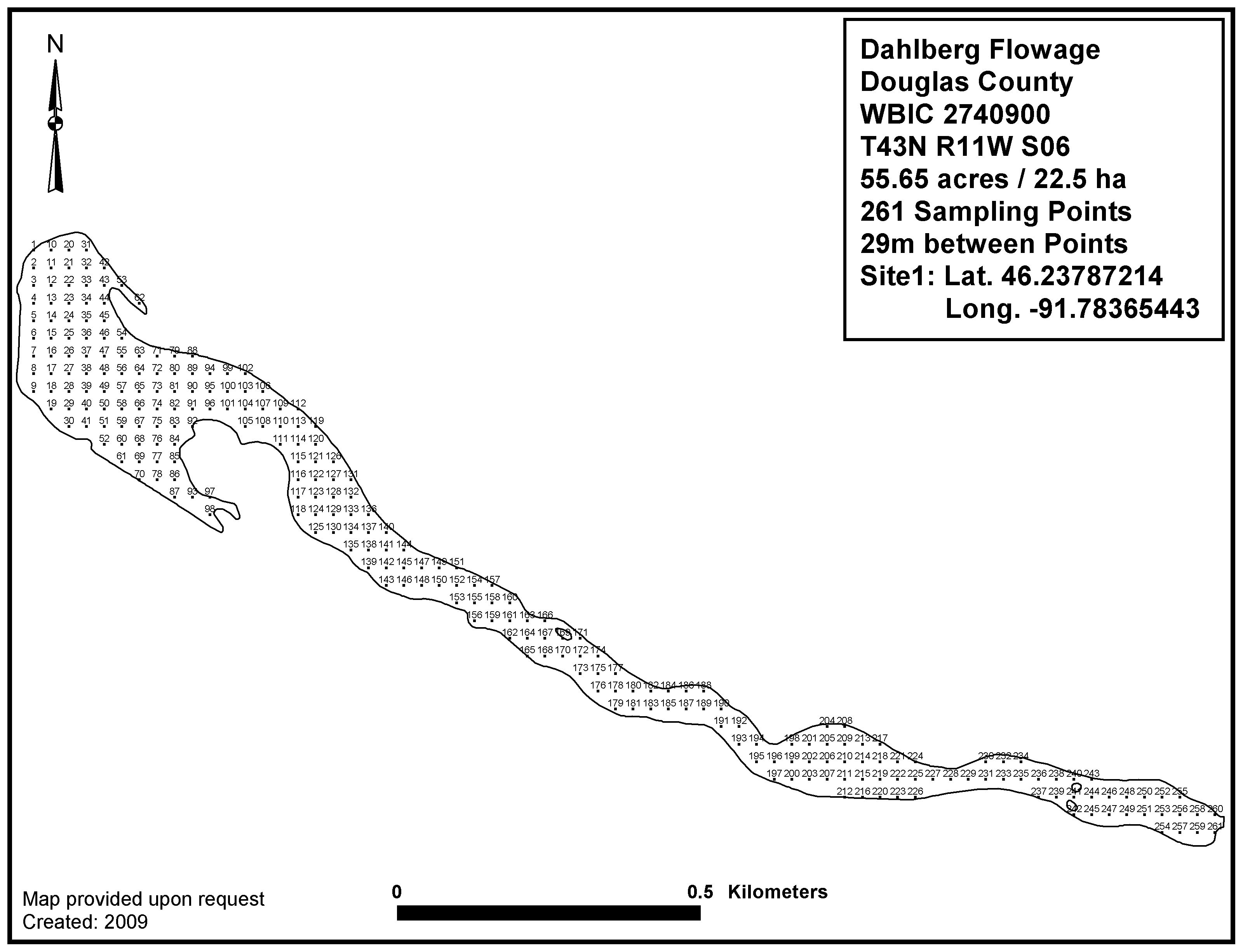 Dahlberg Flowage, Douglas County - Aquatic Plant Sampling Map (29 mpts)