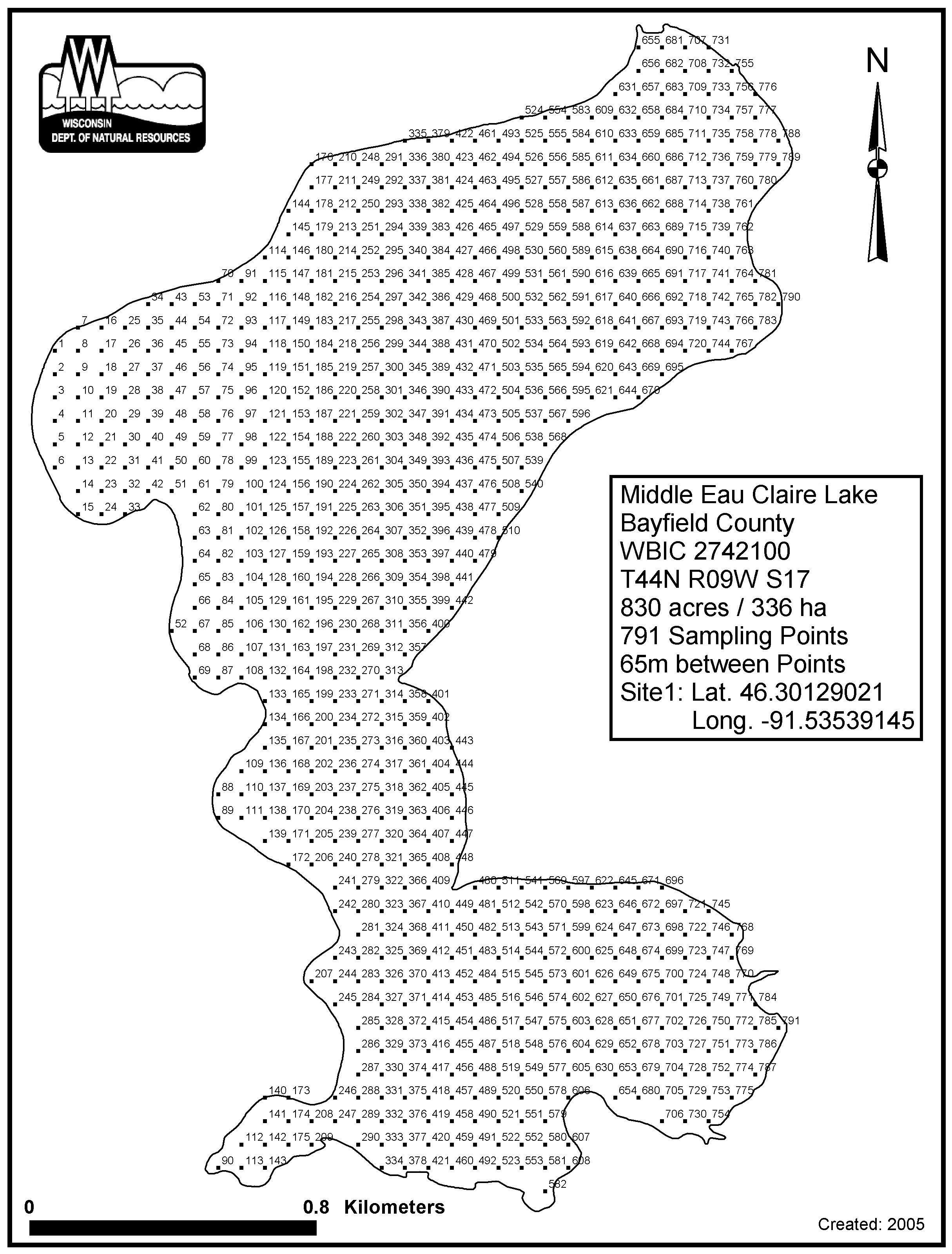 Middle Eau Claire Lake, Bayfield County - Aquatic Plant Sampling Map (65 mpts)