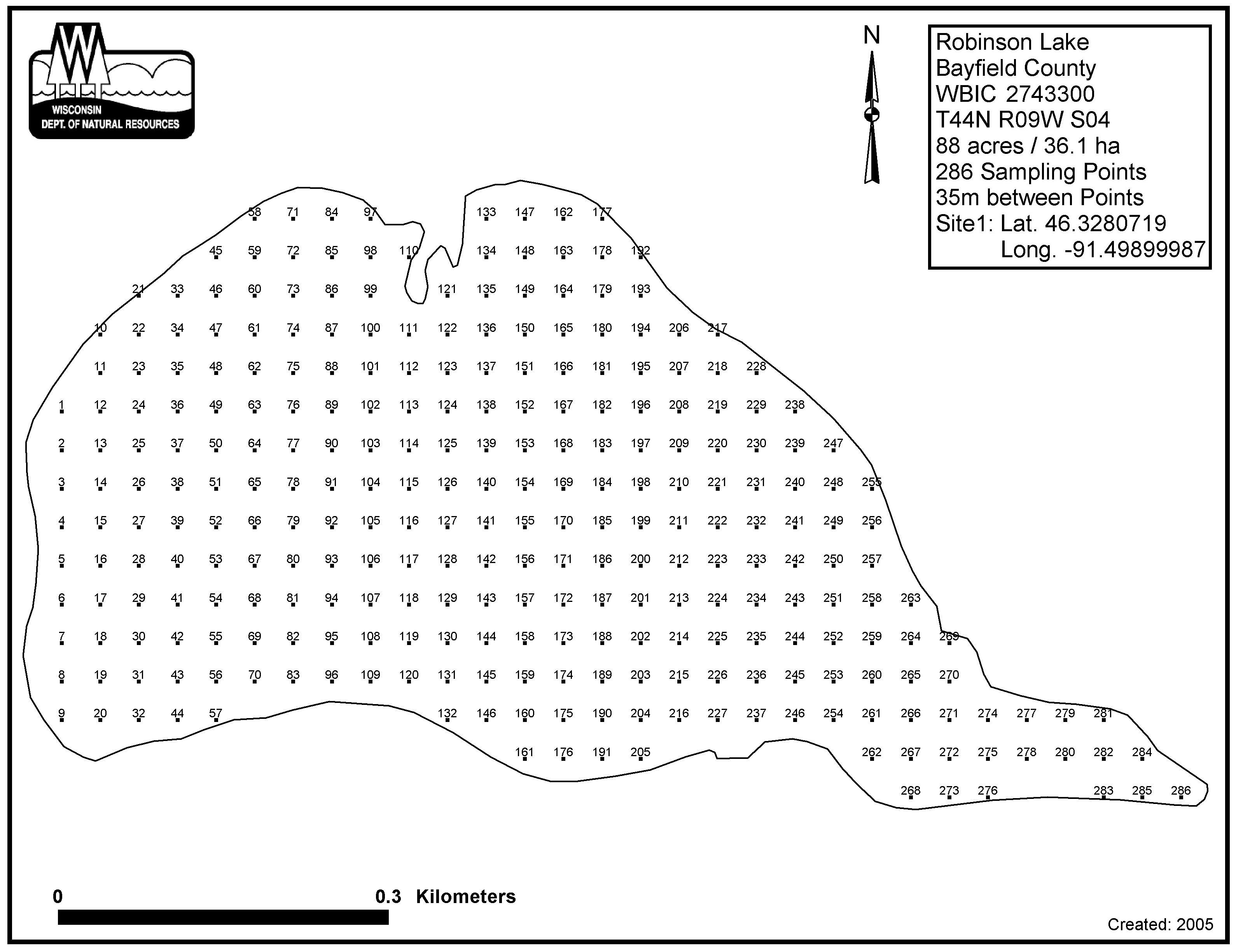 Robinson Lake, Bayfield County - Aquatic Plant Sampling Map (35 mpts)