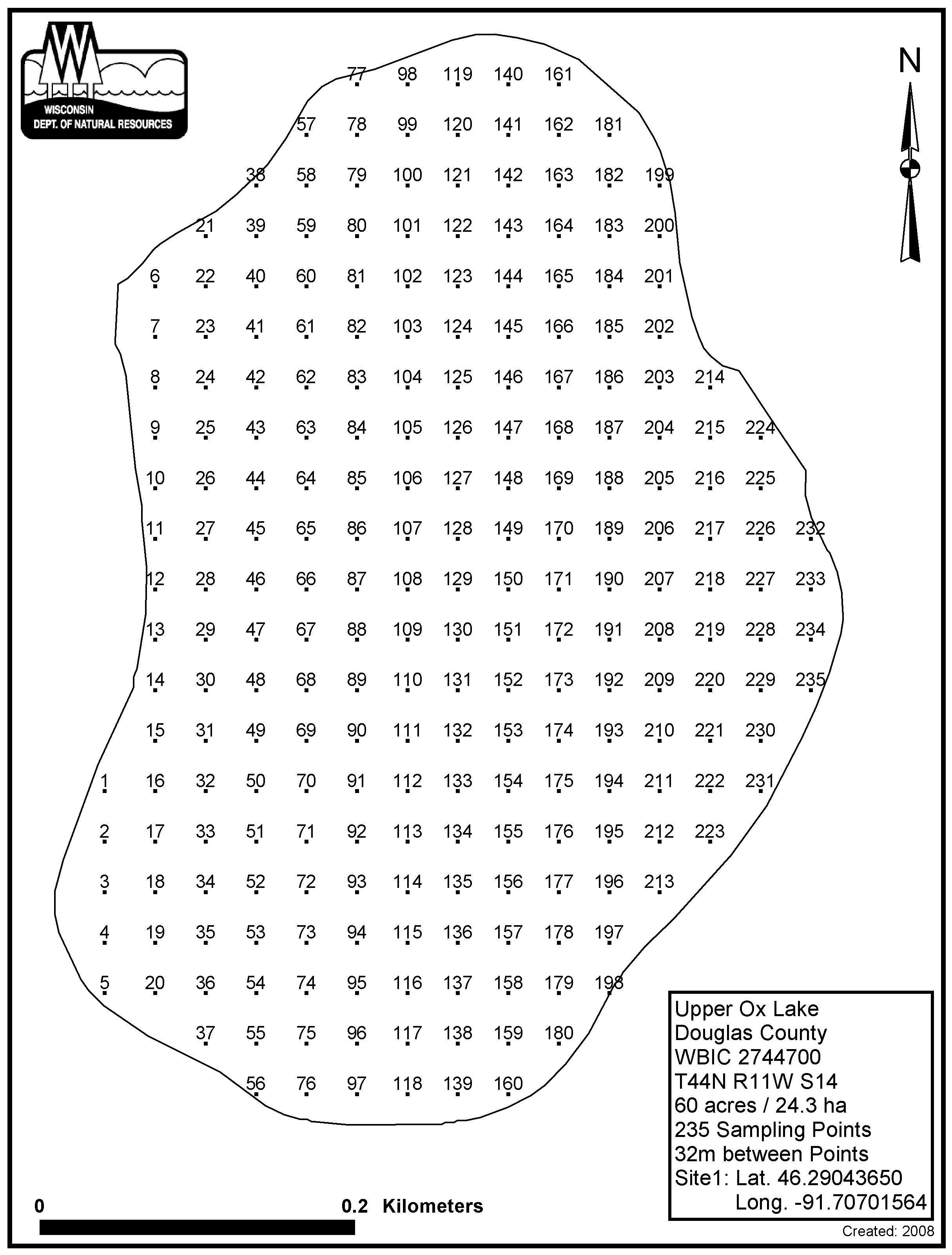 Upper Ox Lake, Douglas County - Aquatic Plant Sampling Map (32 mpts)