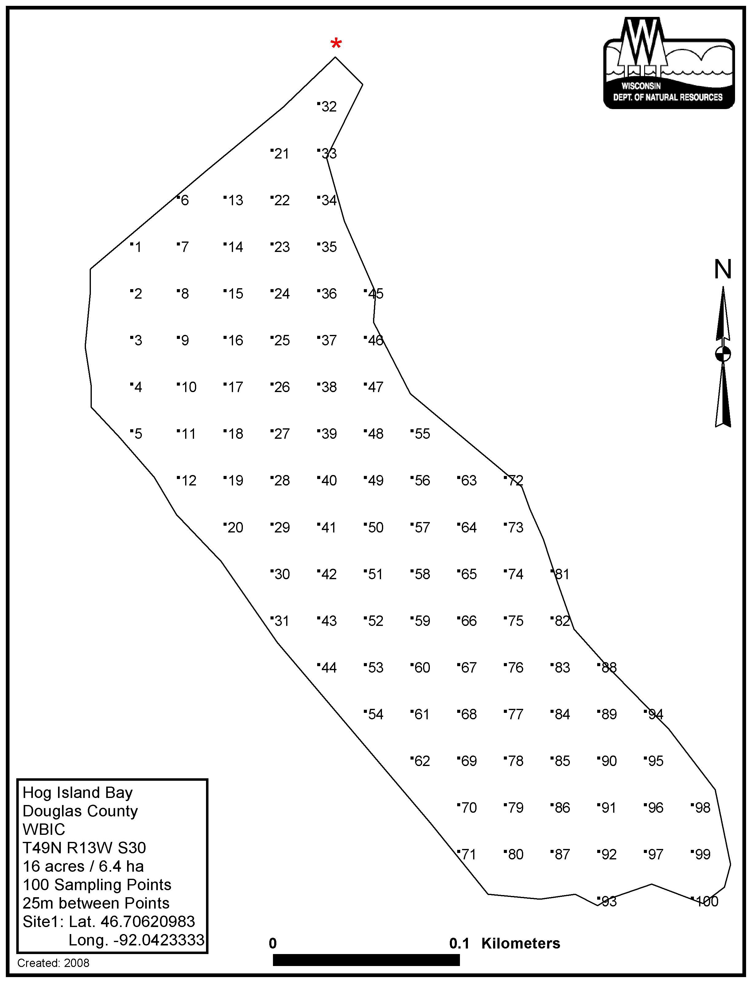 Hog Island Bay, Lake Superior, Douglas County - Aquatic Plant Sampling Map (25 mpts)