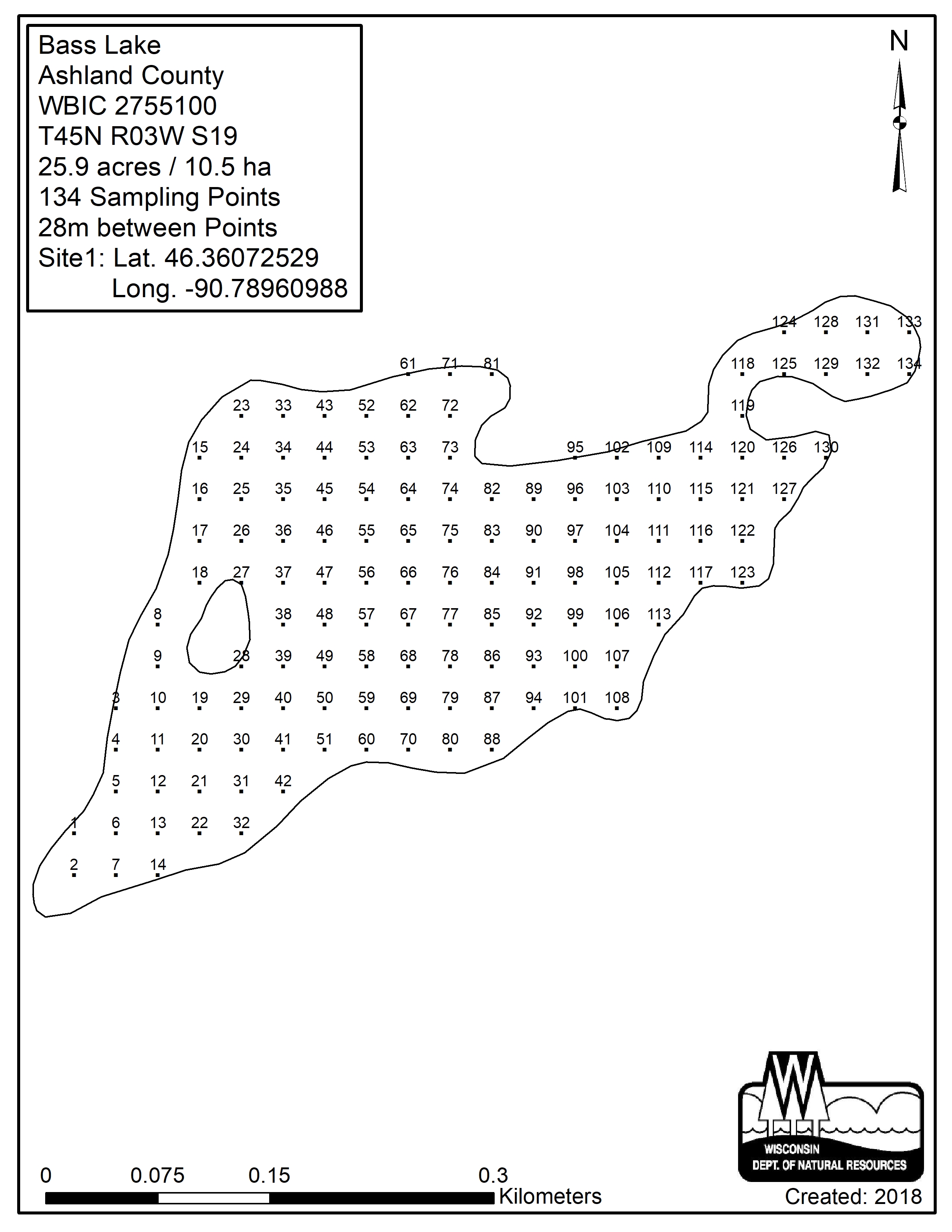 Bass Lake, Ashland County - Aquatic Plant Sampling Map (28 mpts)