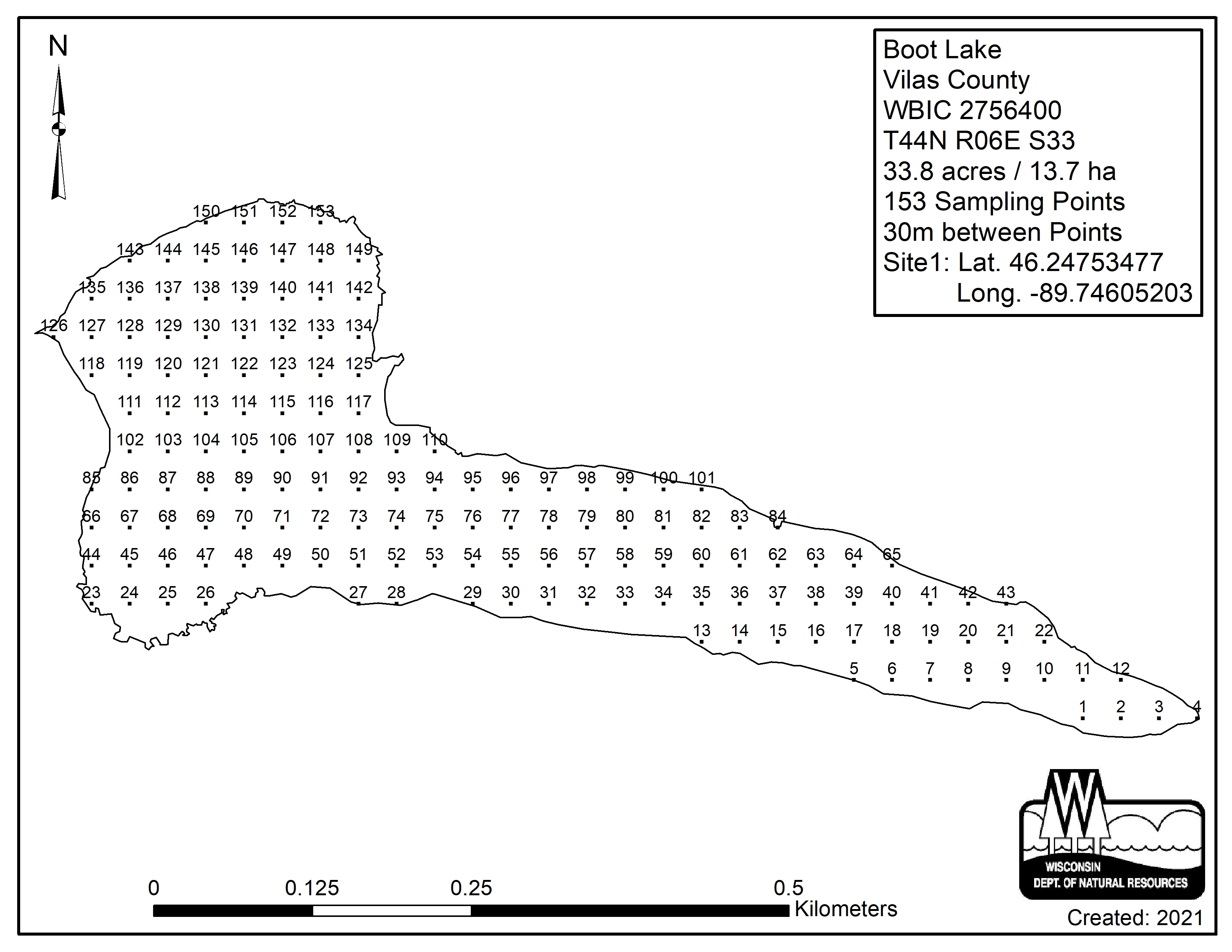 Boot Lake, Vilas County (2756400) - Aquatic Plant Sampling Map (30 mpts)