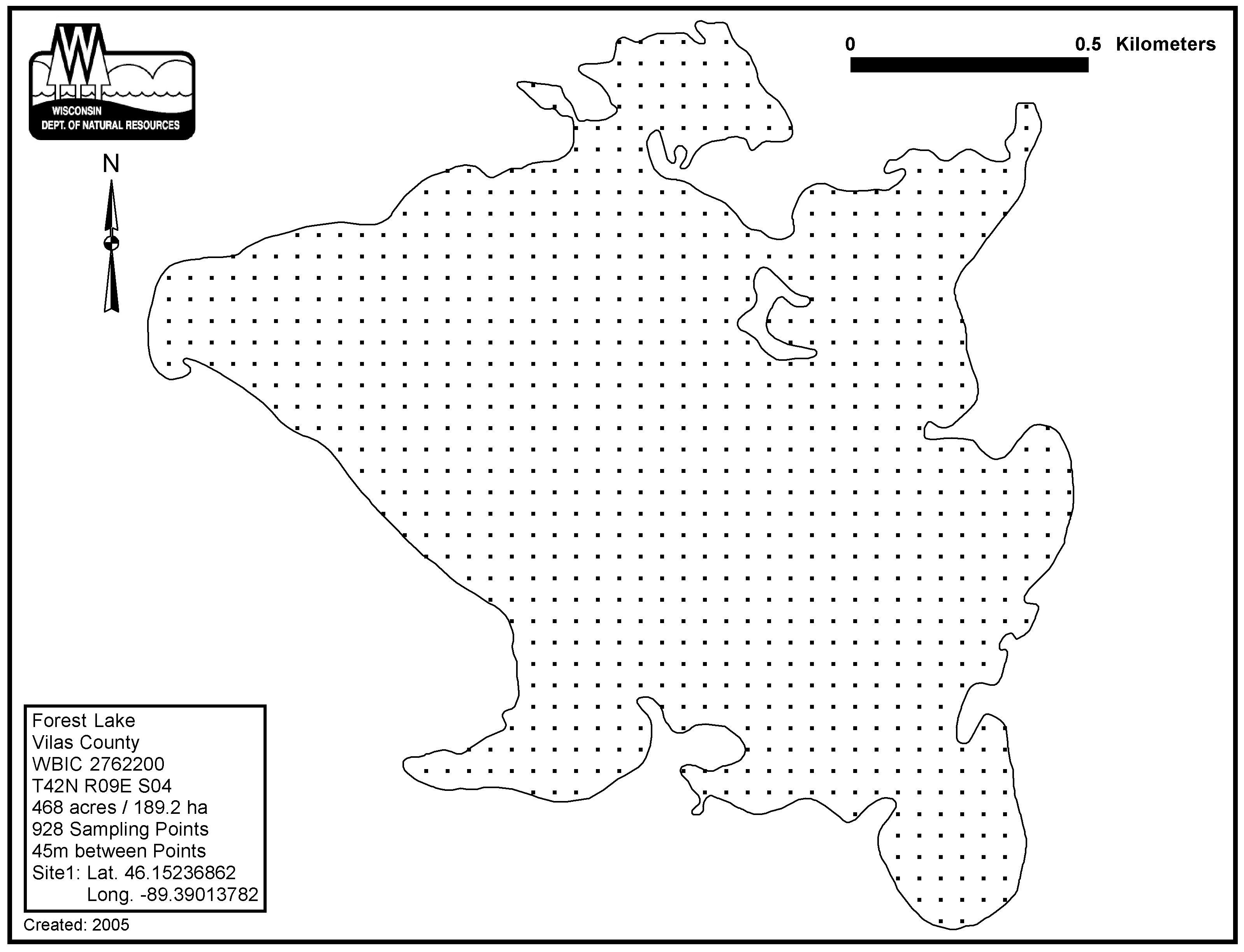 Forest Lake, Vilas County - Aquatic Plant Sampling Map (2)(45 mpts)