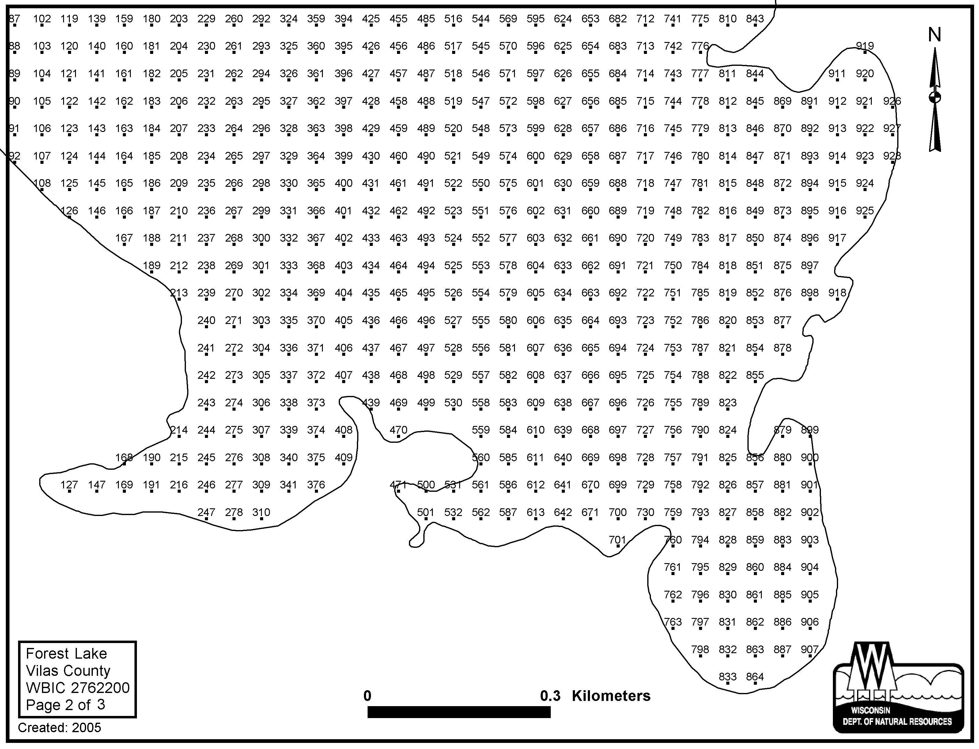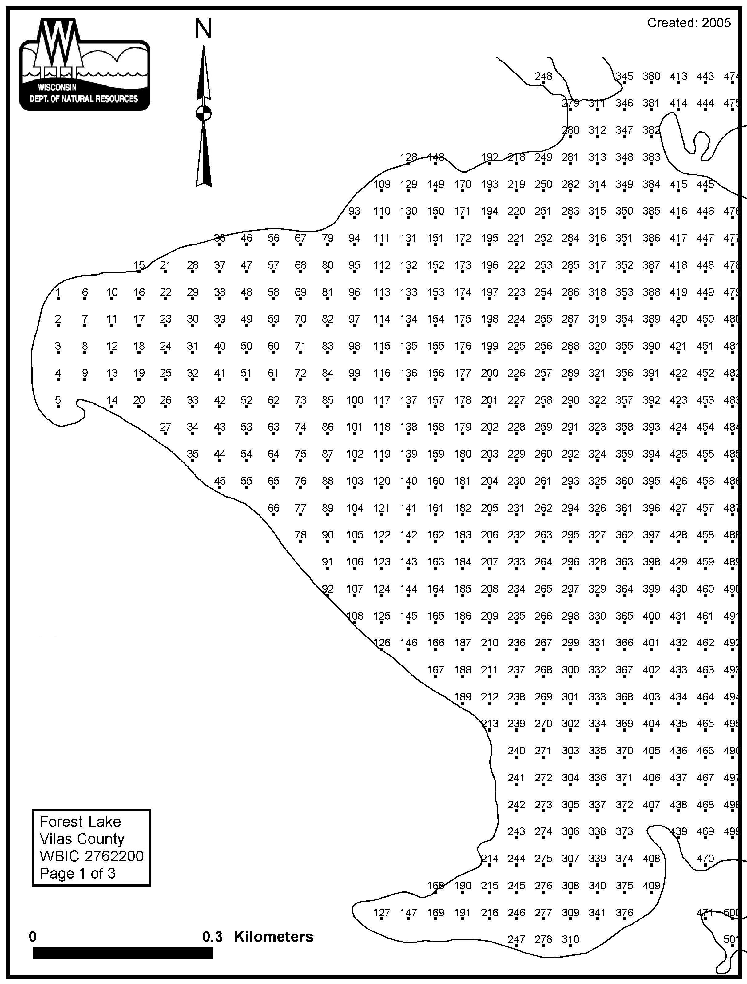 Forest Lake, Vilas County - Aquatic Plant Sampling Map (3)(45 mpts)