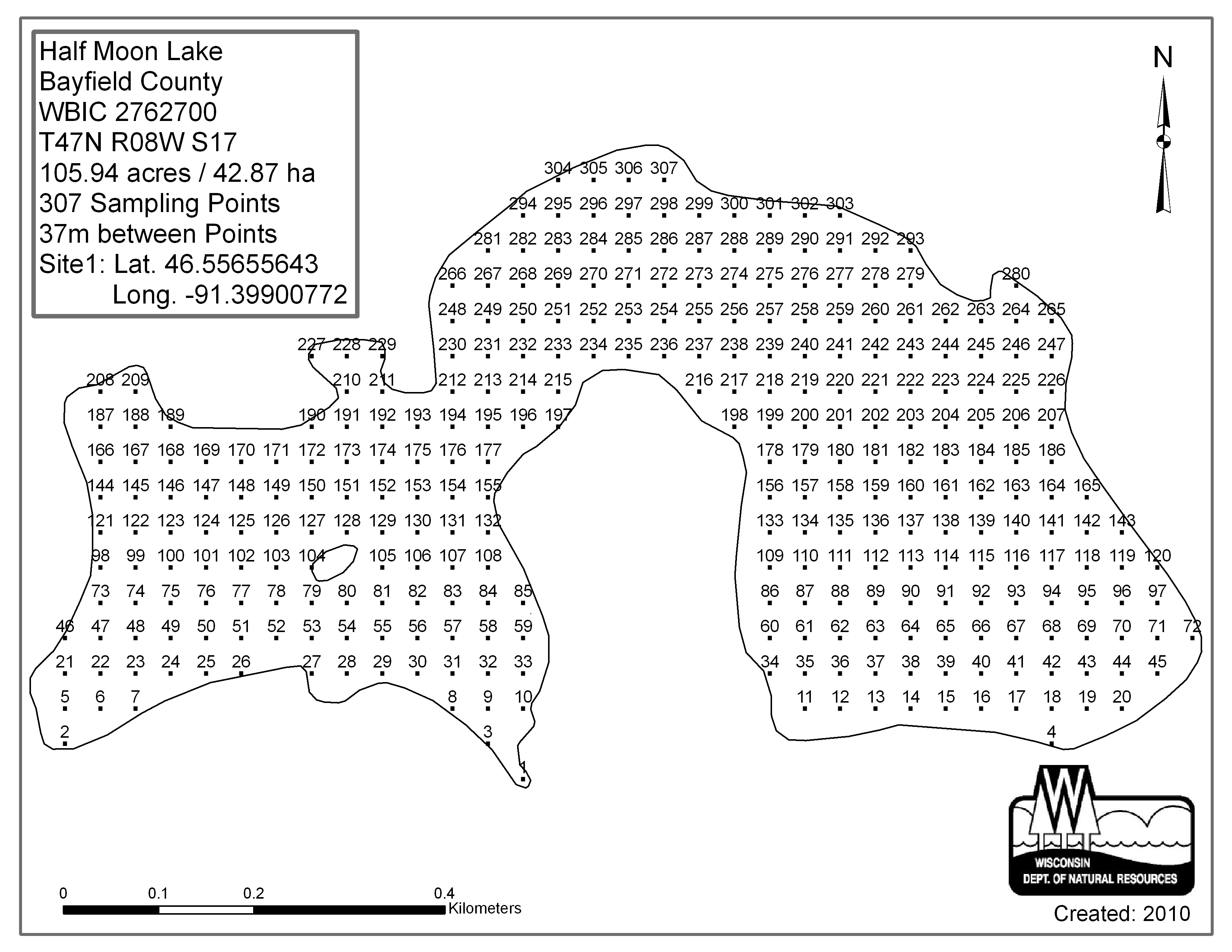 Half Moon Lake, Bayfield County - Aquatic Plant Sampling Map (37 mpts)
