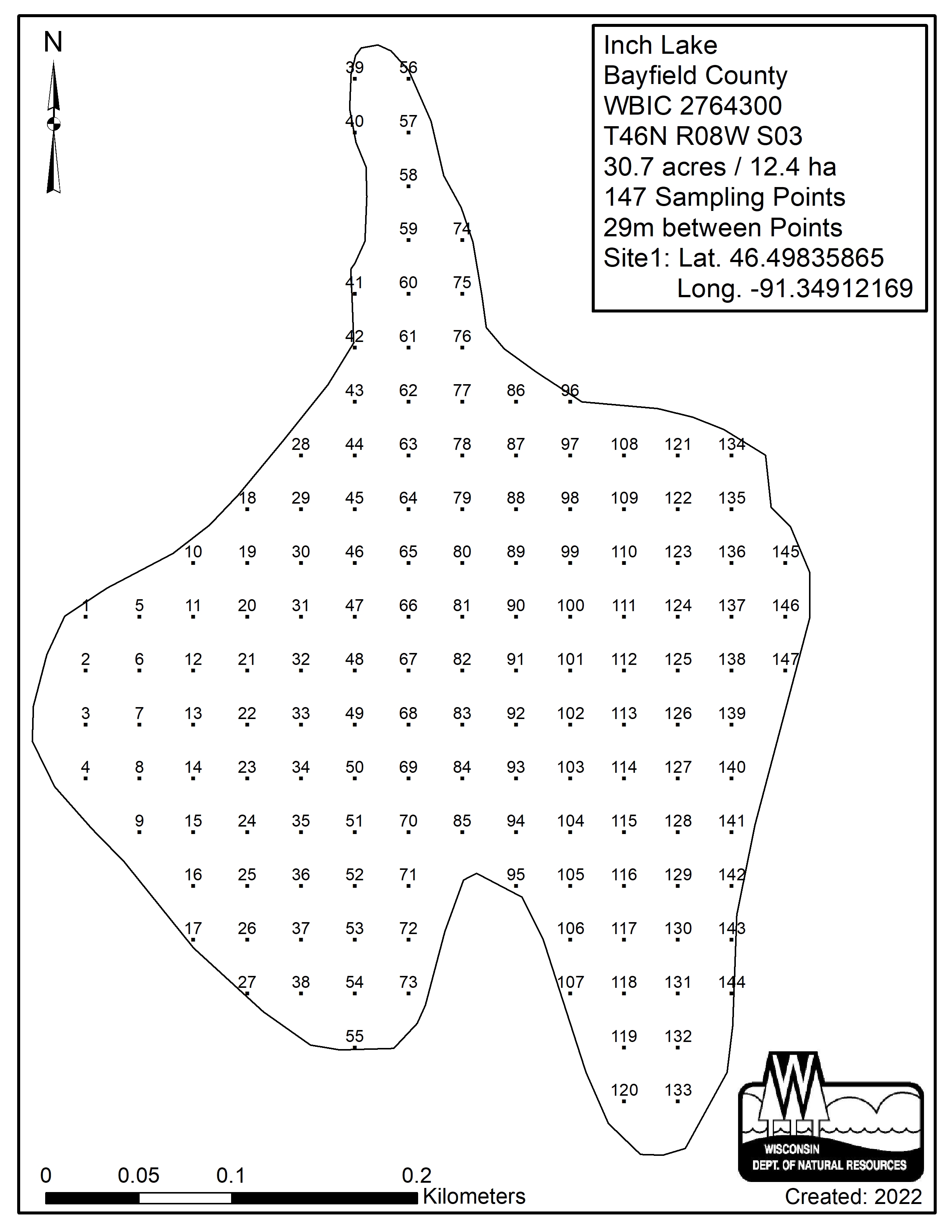 Inch Lake, Bayfield County - Aquatic Plant Sampling Map (29 mpts)