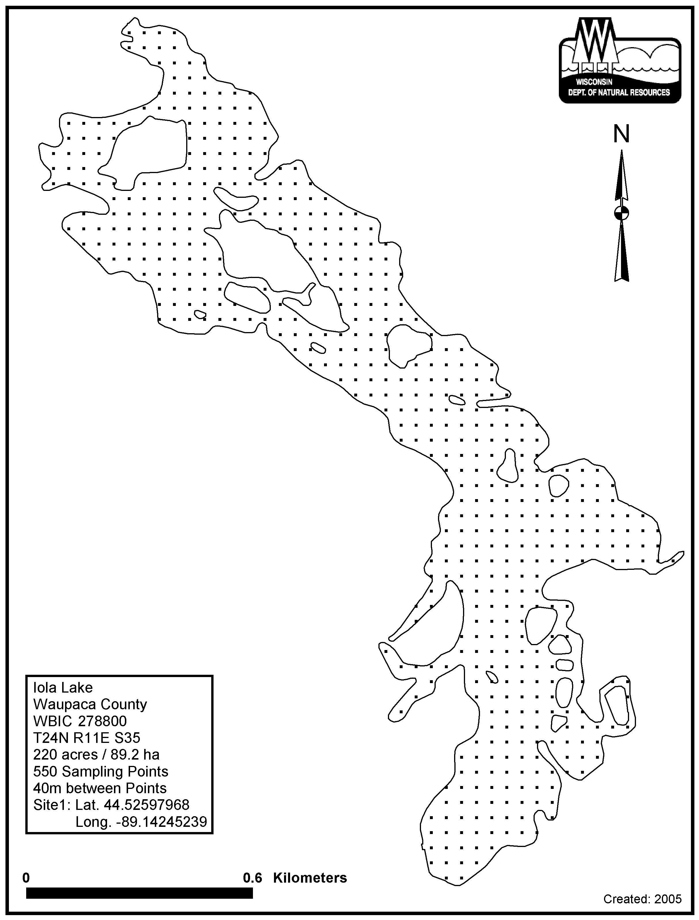 Iola Lake, Waupaca County - Aquatic Plant Sampling Map (2)(40 mpts)