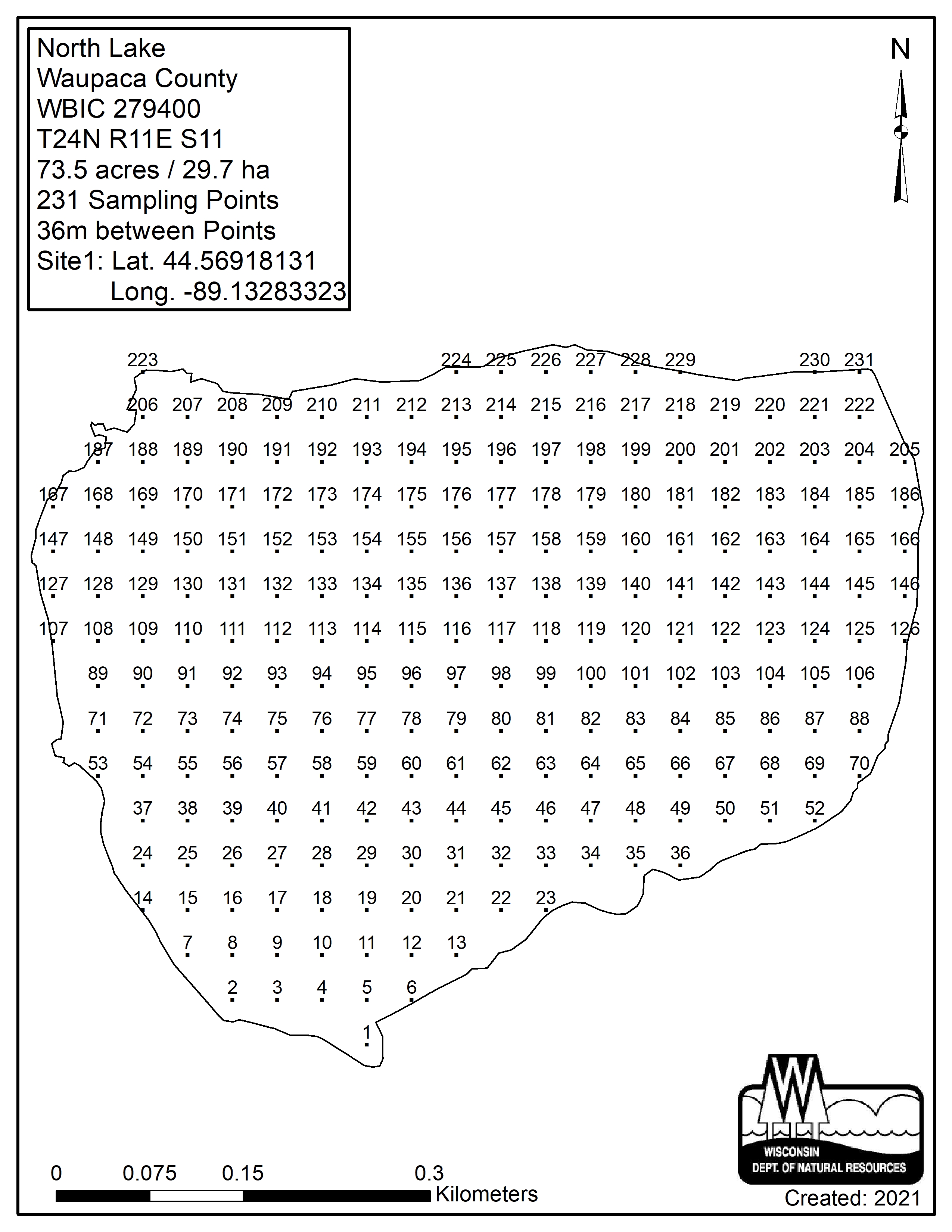 North Lake, Waupaca County - Aquatic Plant Sampling Map (36 mpts)
