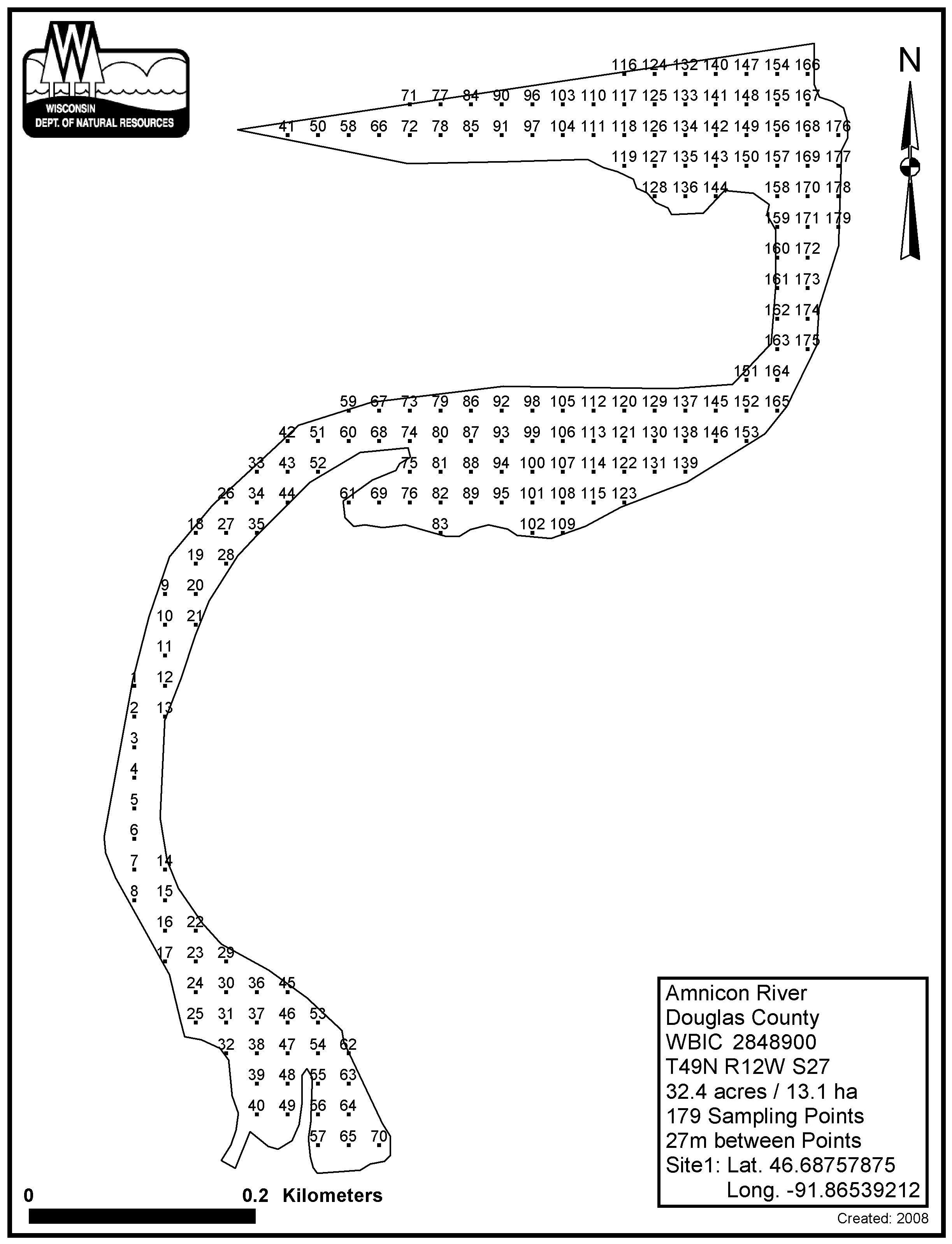 Amnicon River, Douglas County - Aquatic Plant Sampling Map (27 mpts)
