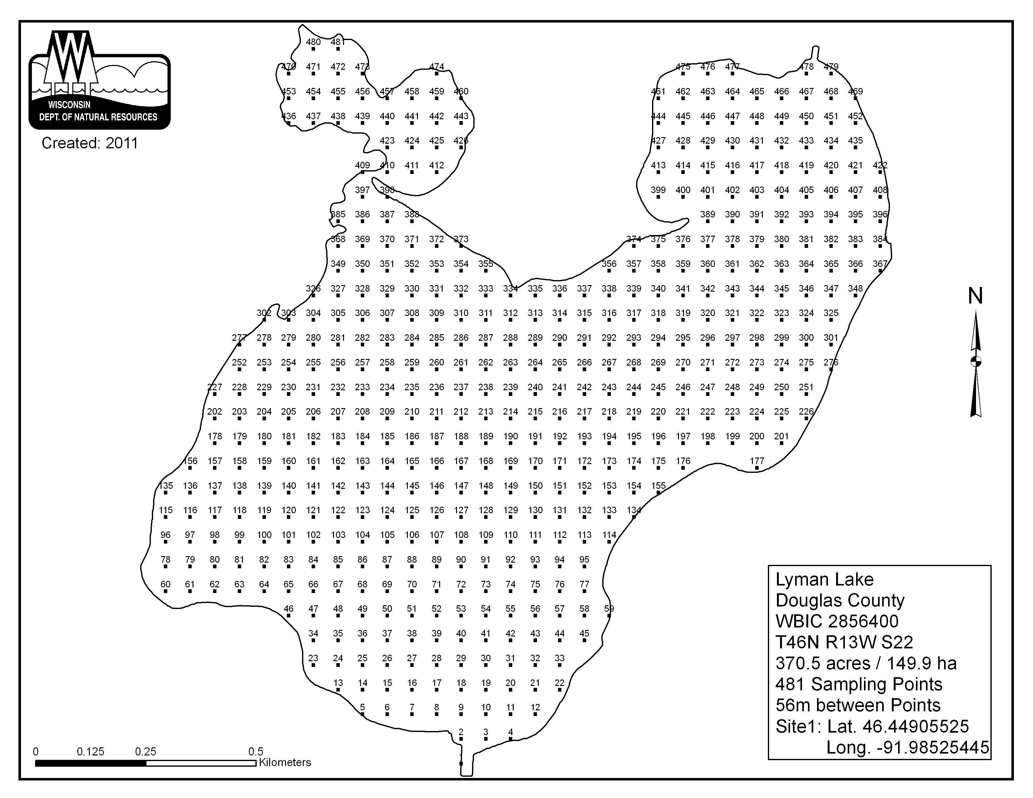 Lyman Lake, Douglas County - Aquatic Plant Sampling Map (56 mpts)
