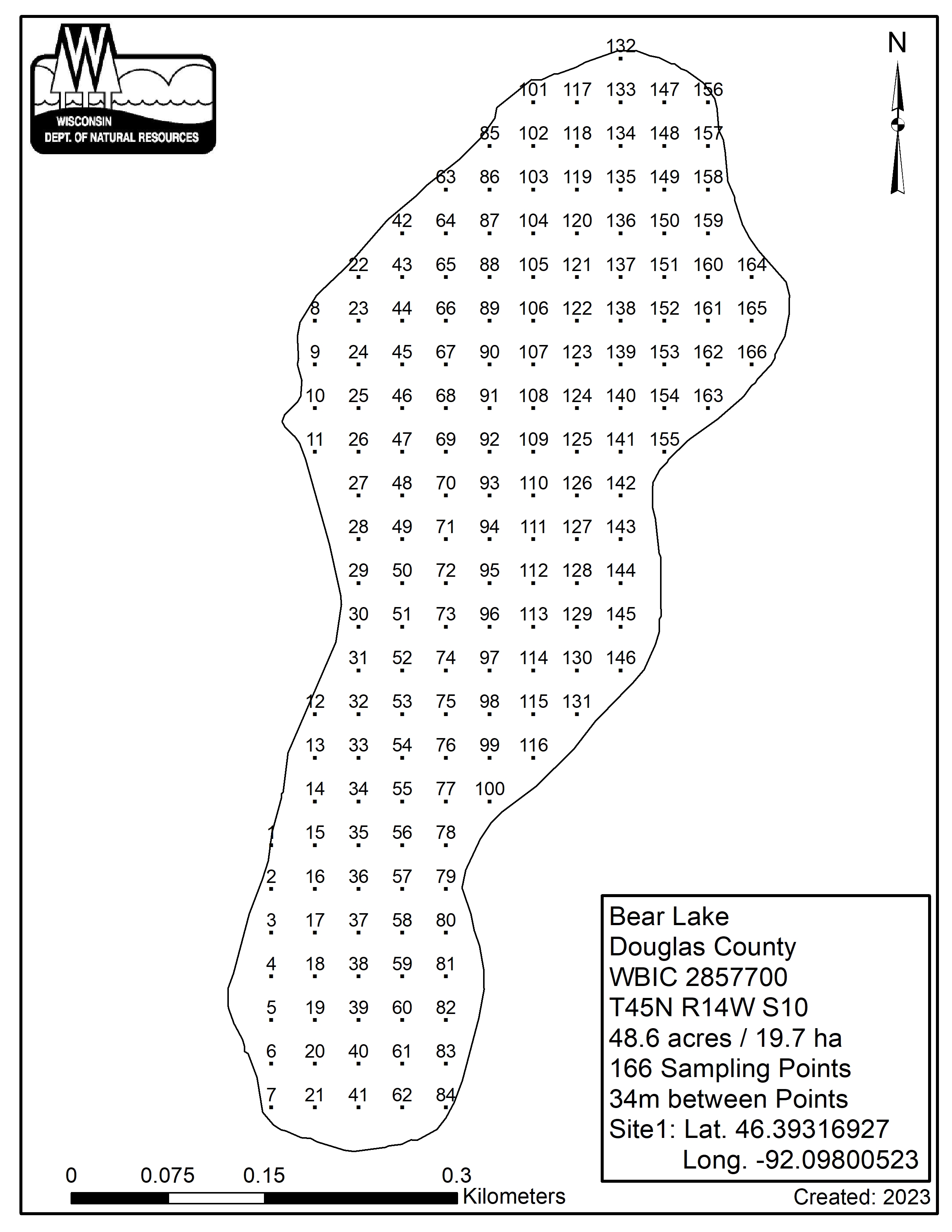 Bear Lake, Douglas County - Aquatic Plant Sampling Map (34 mpts)