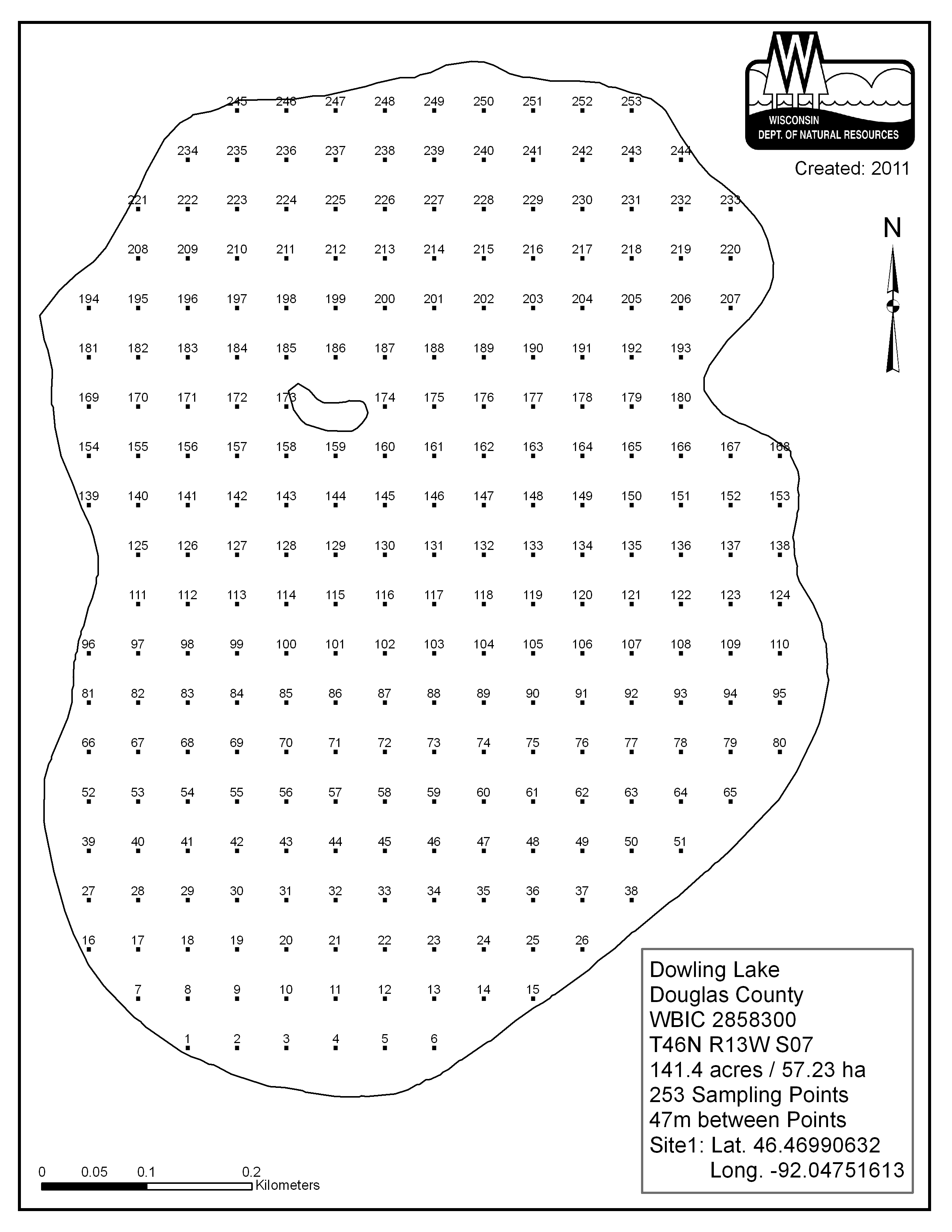Dowling Lake, Douglas County - Aquatic Plant Sampling Map (47 mpts)