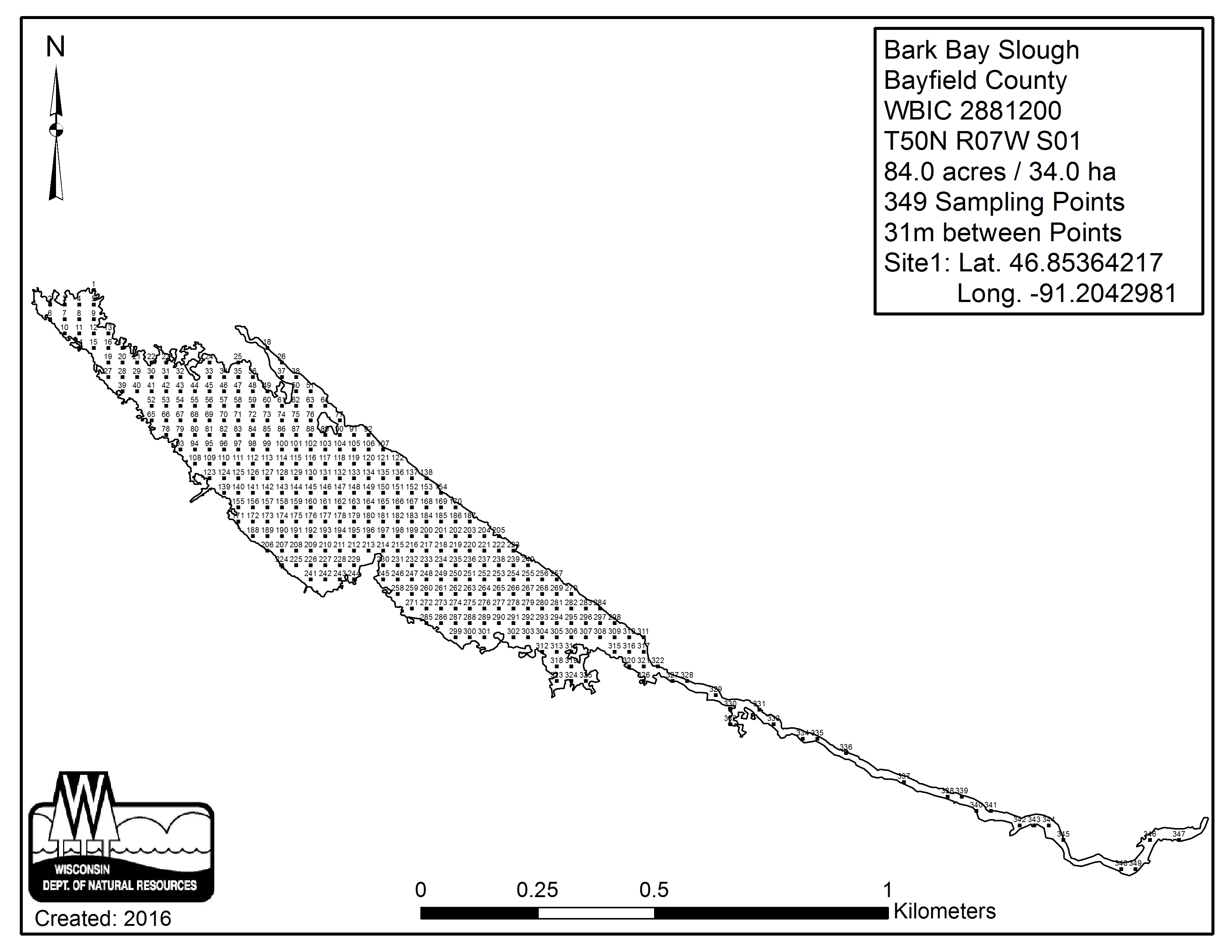 Bark Bay Slough, Bayfield County - Aquatic Plant Sampling Map (2)(31 mpts)