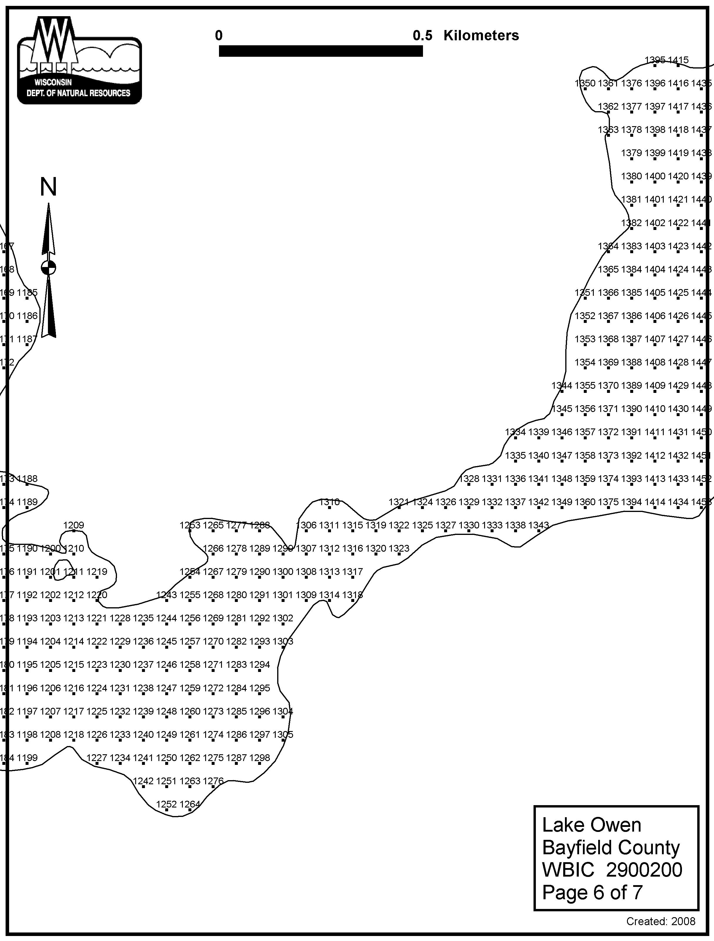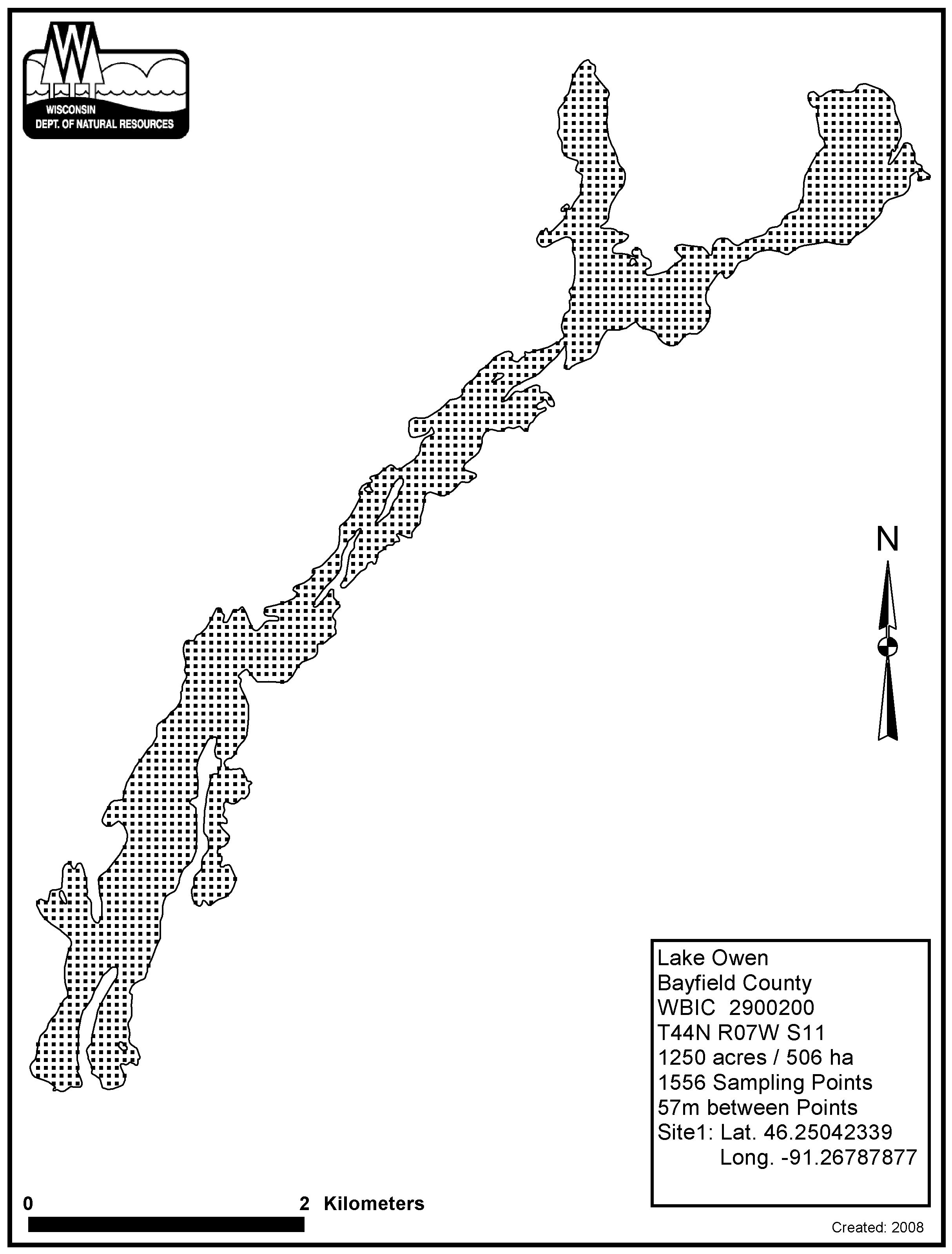 Lake Owen, Bayfield County - Aquatic Plant Sampling Map (6)(57 mpts)
