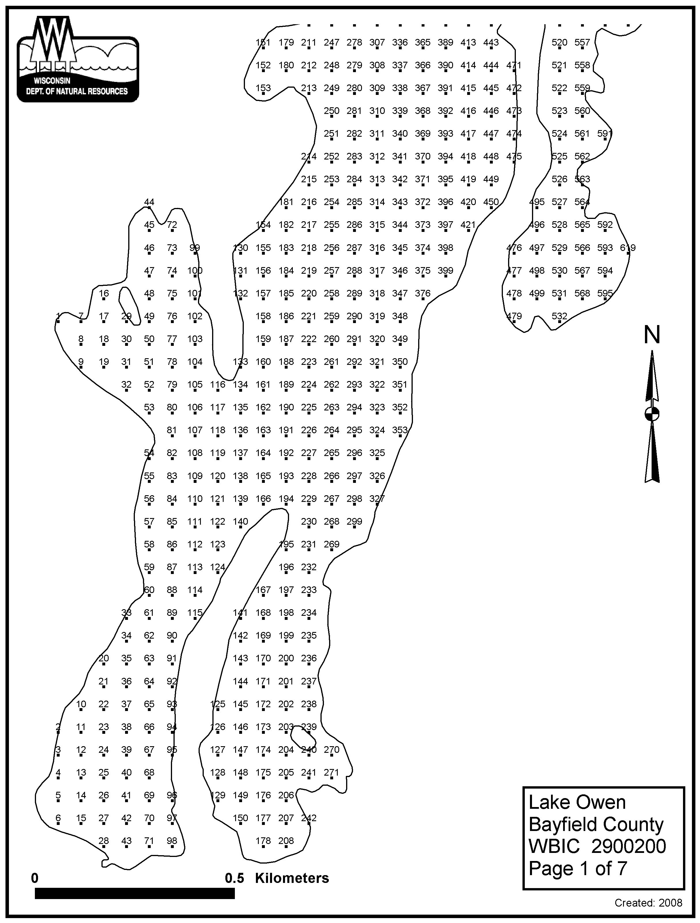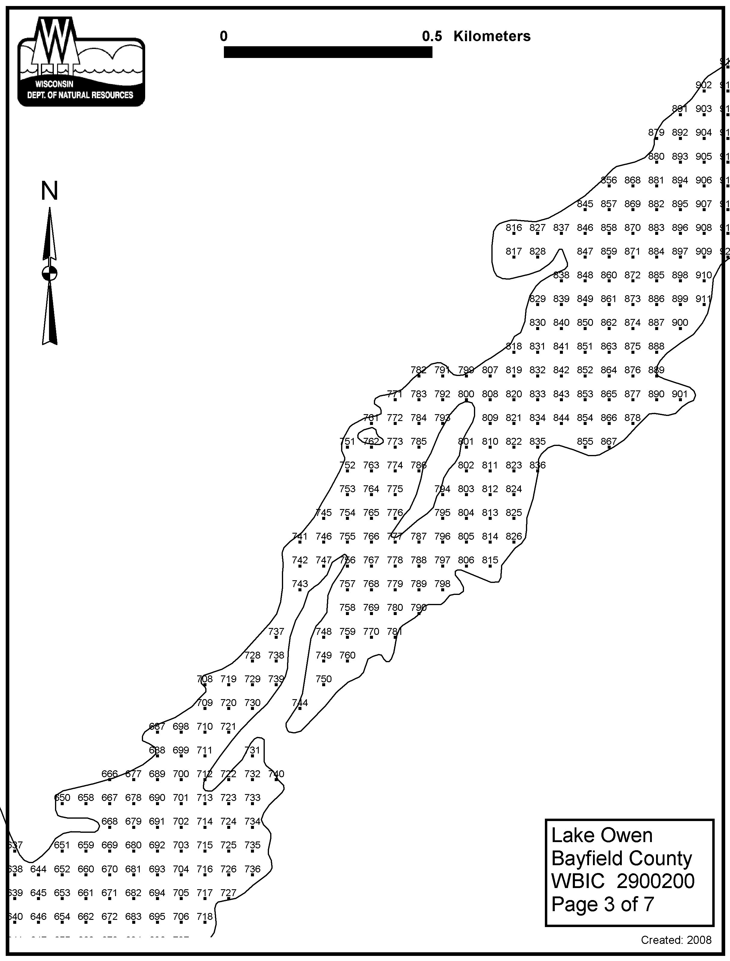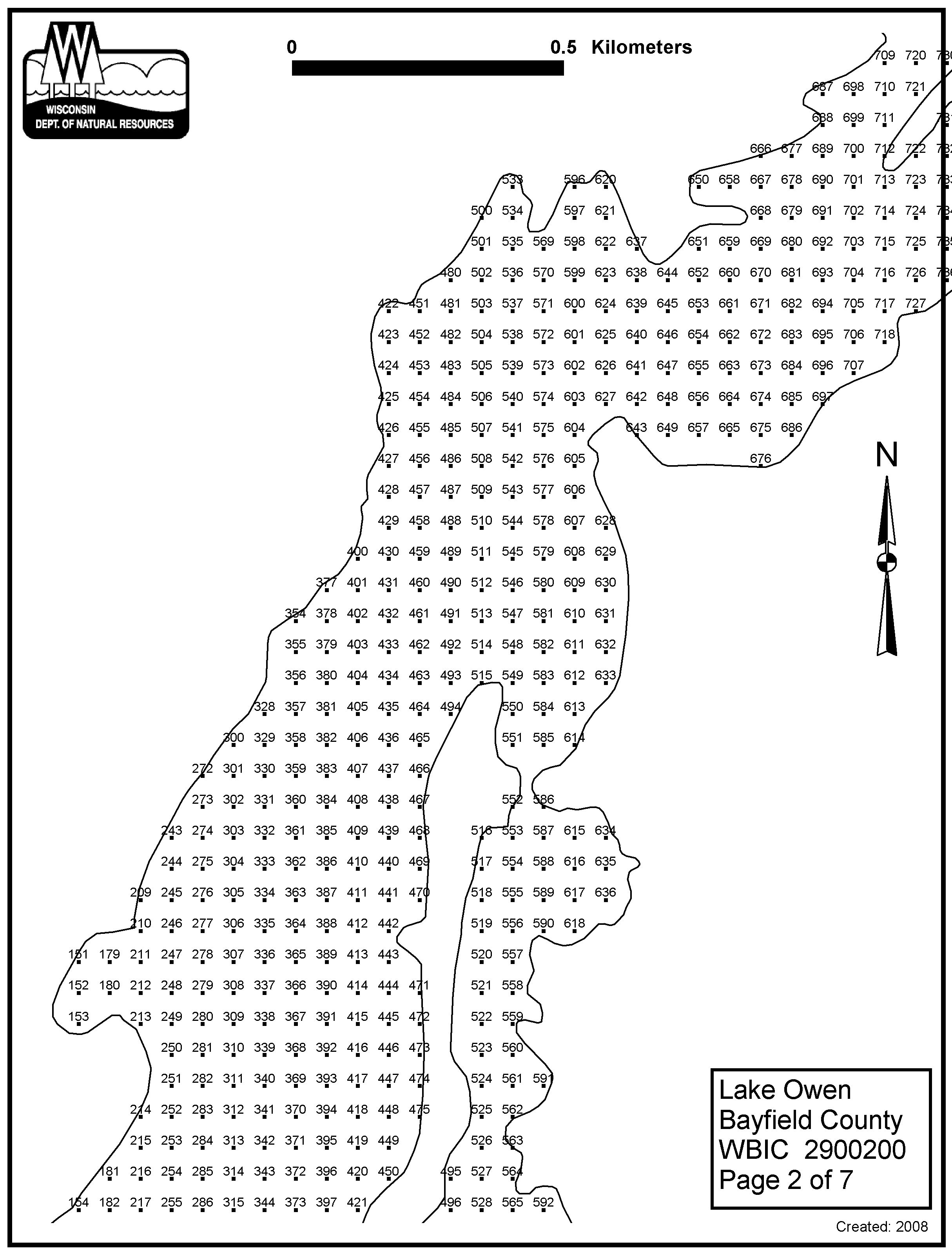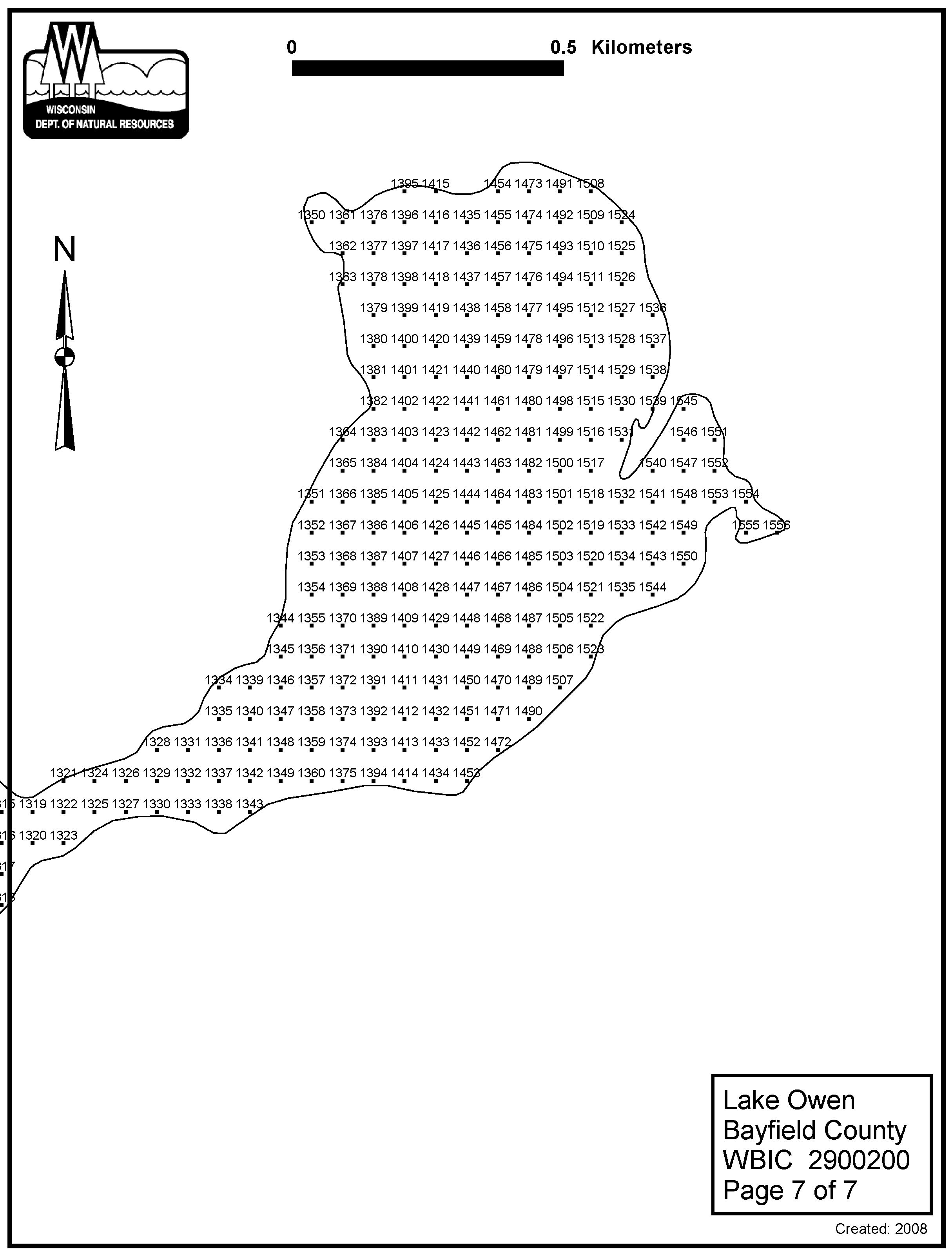 Lake Owen, Bayfield County - Aquatic Plant Sampling Map (7)(57 mpts)