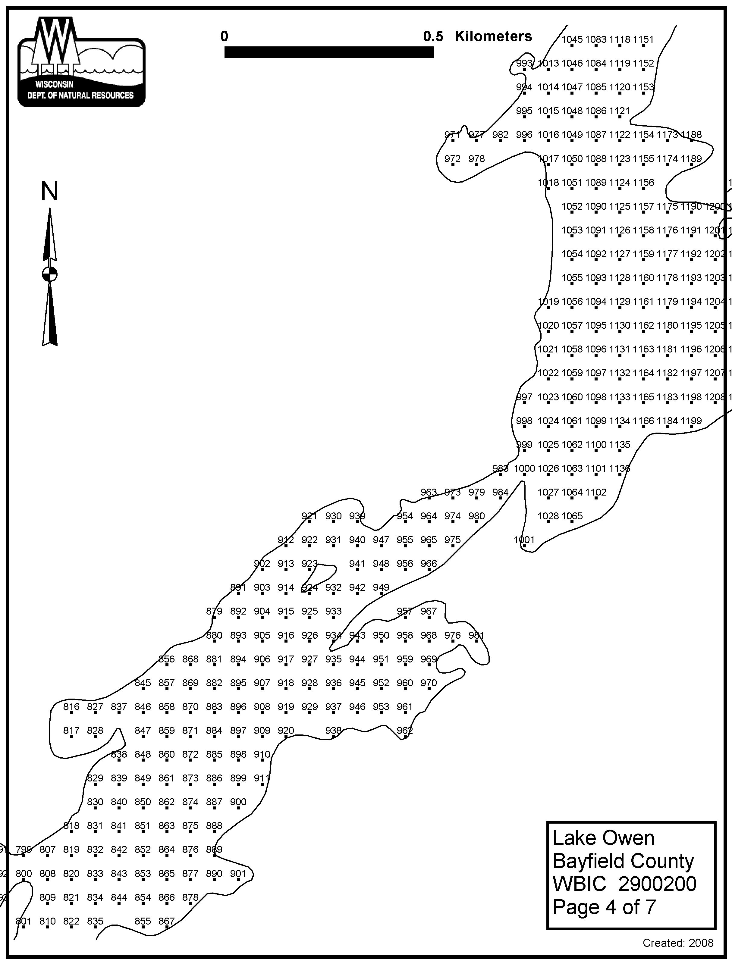 Lake Owen, Bayfield County - Aquatic Plant Sampling Map (4)(57 mpts)