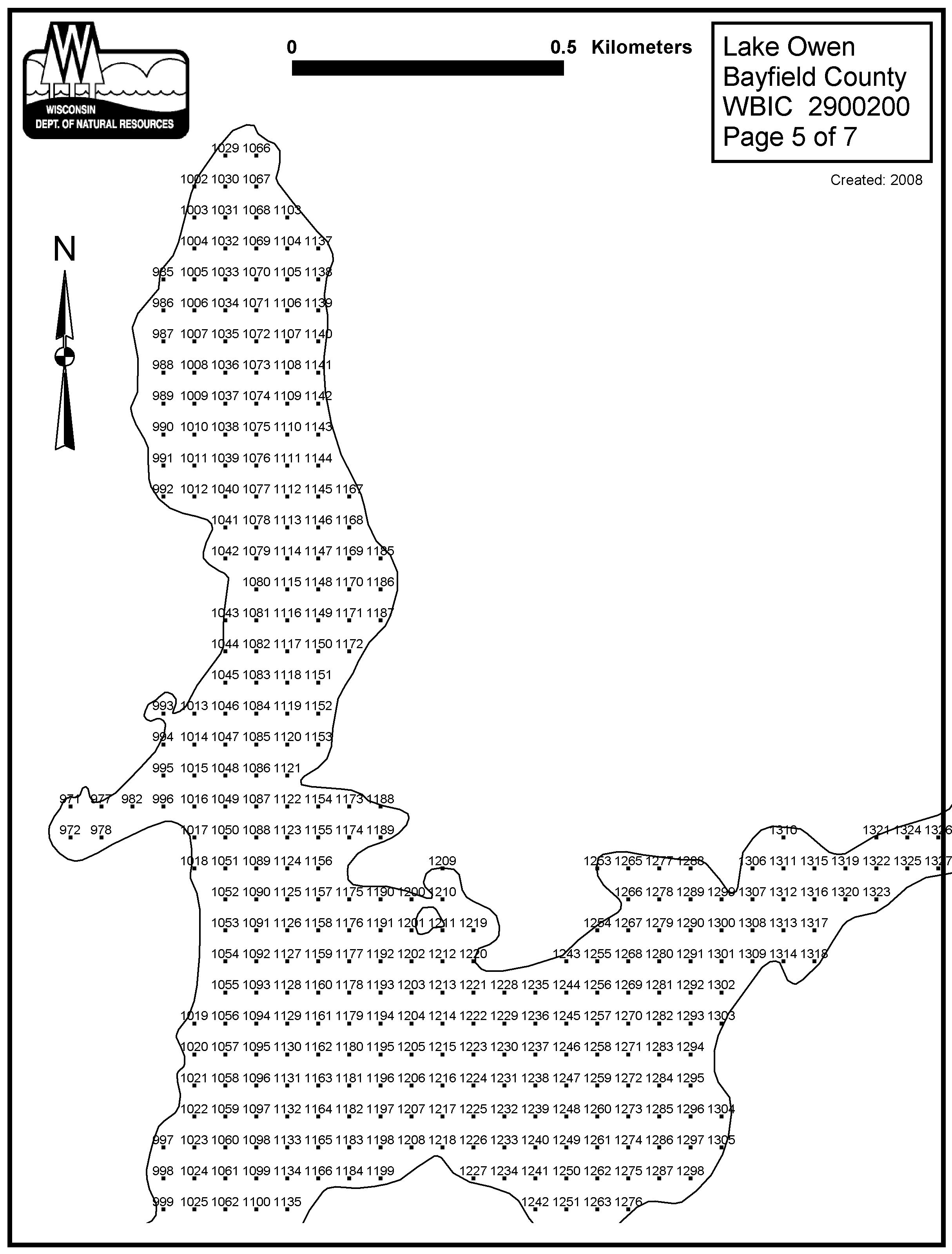 Lake Owen, Bayfield County - Aquatic Plant Sampling Map (5)(57 mpts)