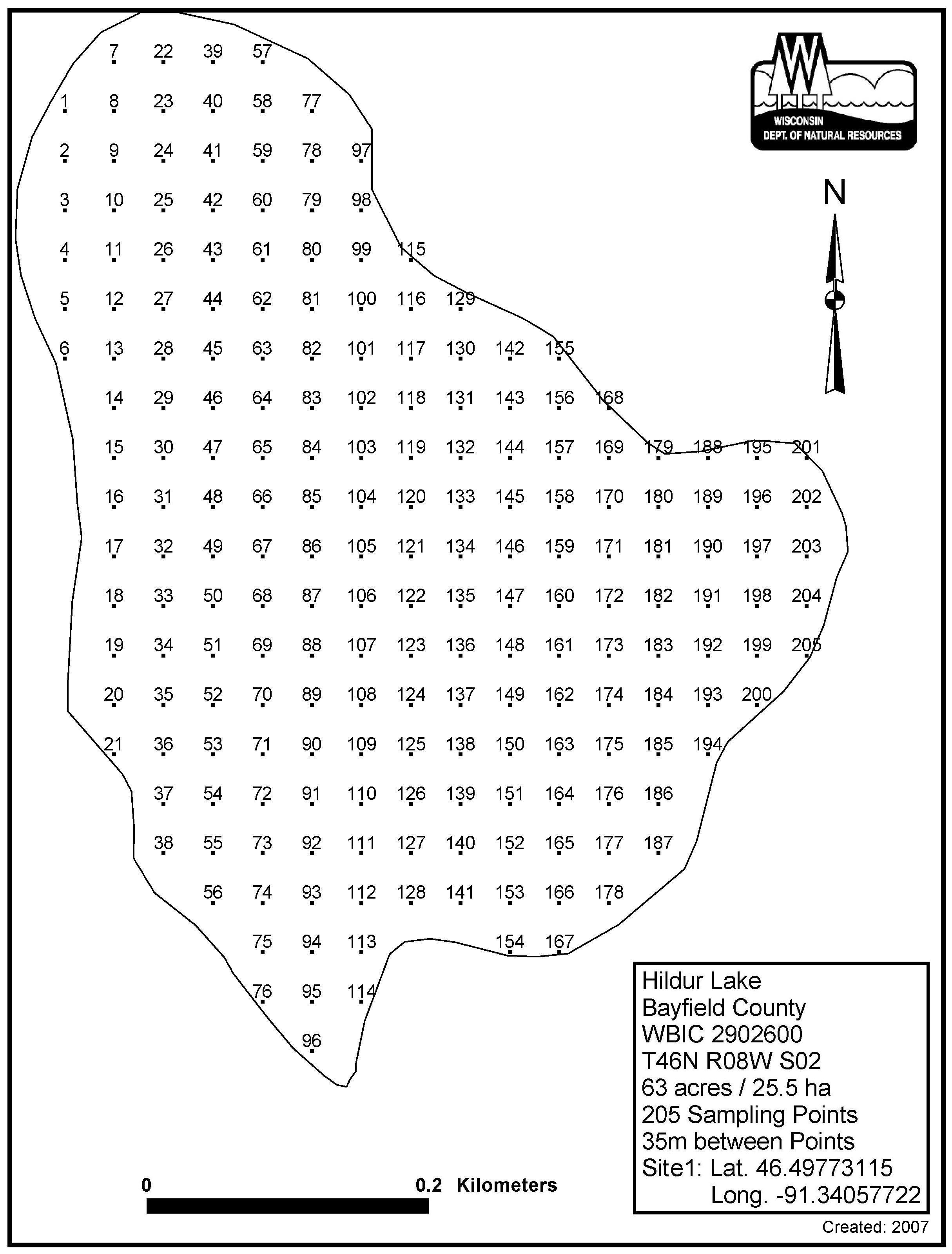 Hildur Lake, Bayfield County - Aquatic Plant Sampling Map (35 mpts)