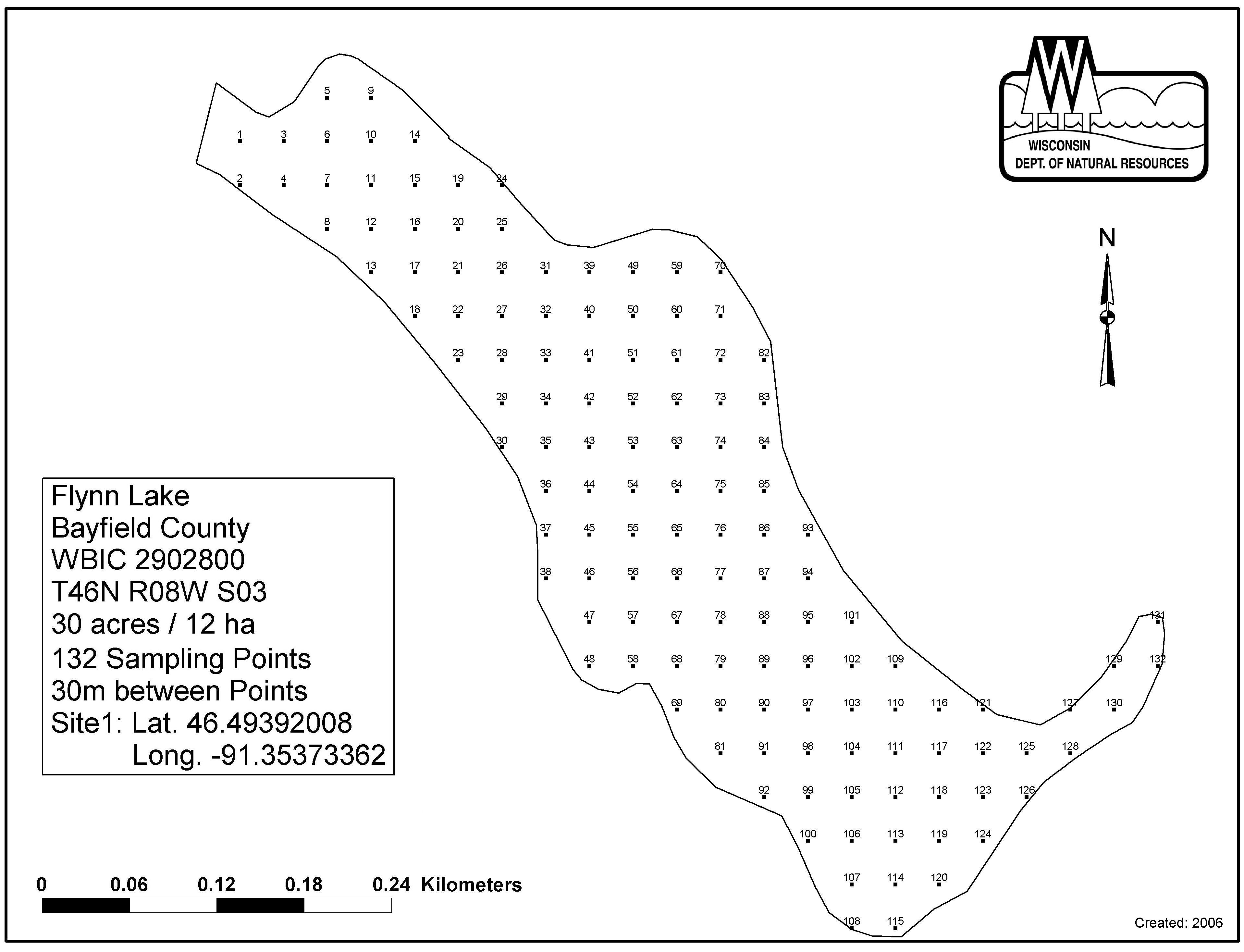 Flynn Lake, Bayfield County - Aquatic Plant Sampling Map (30 mpts)