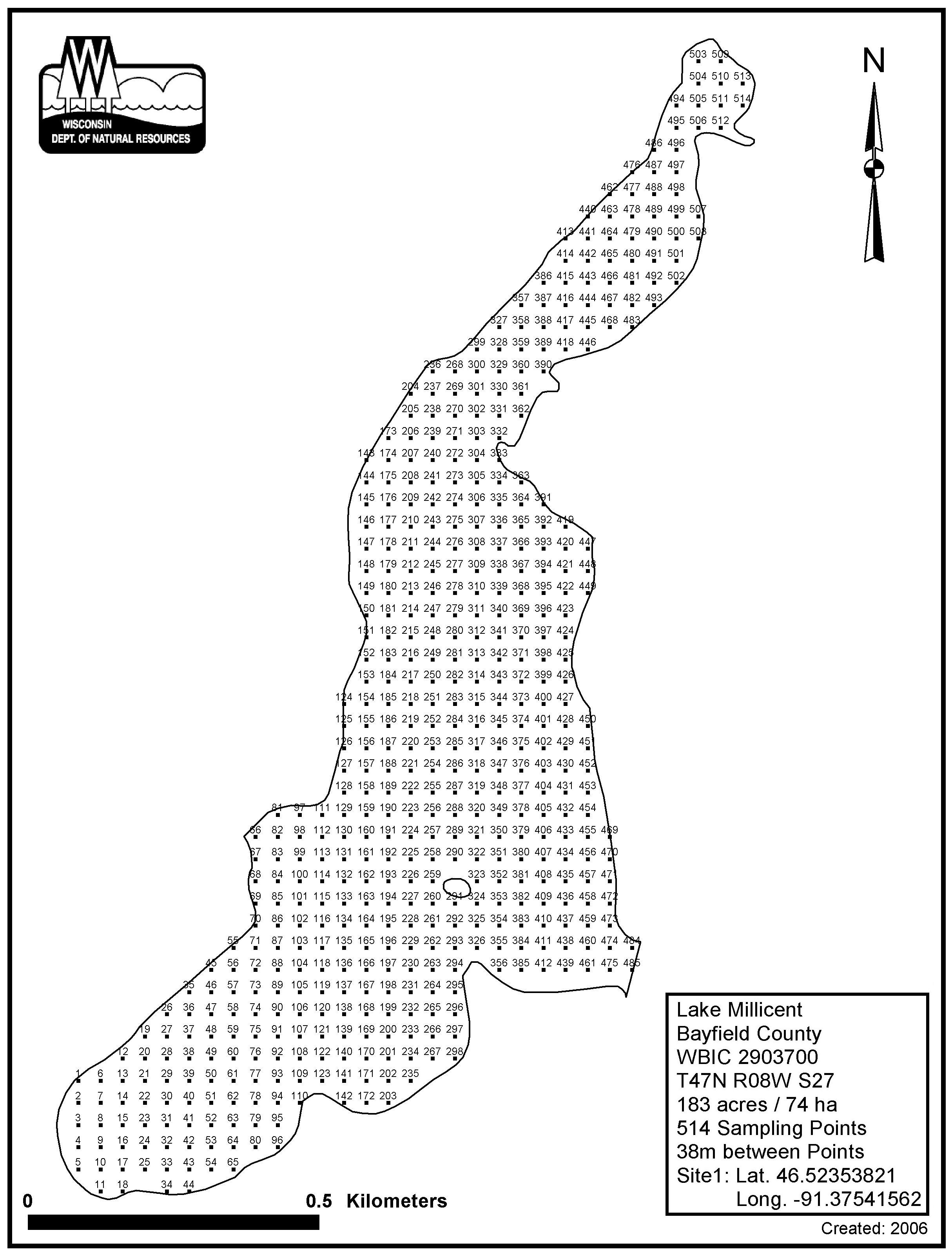 Lake Millicent, Bayfield County - Aquatic Plant Sampling Map (38 mpts)