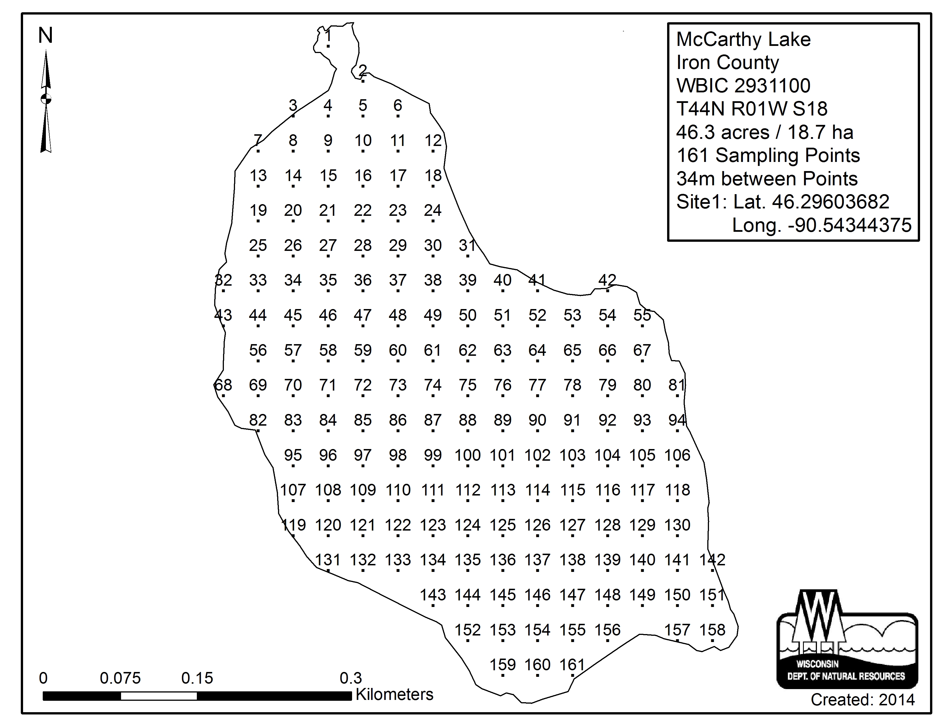 McCarthy Lake, Iron County - Aquatic Plant Sampling Map (34 mpts)