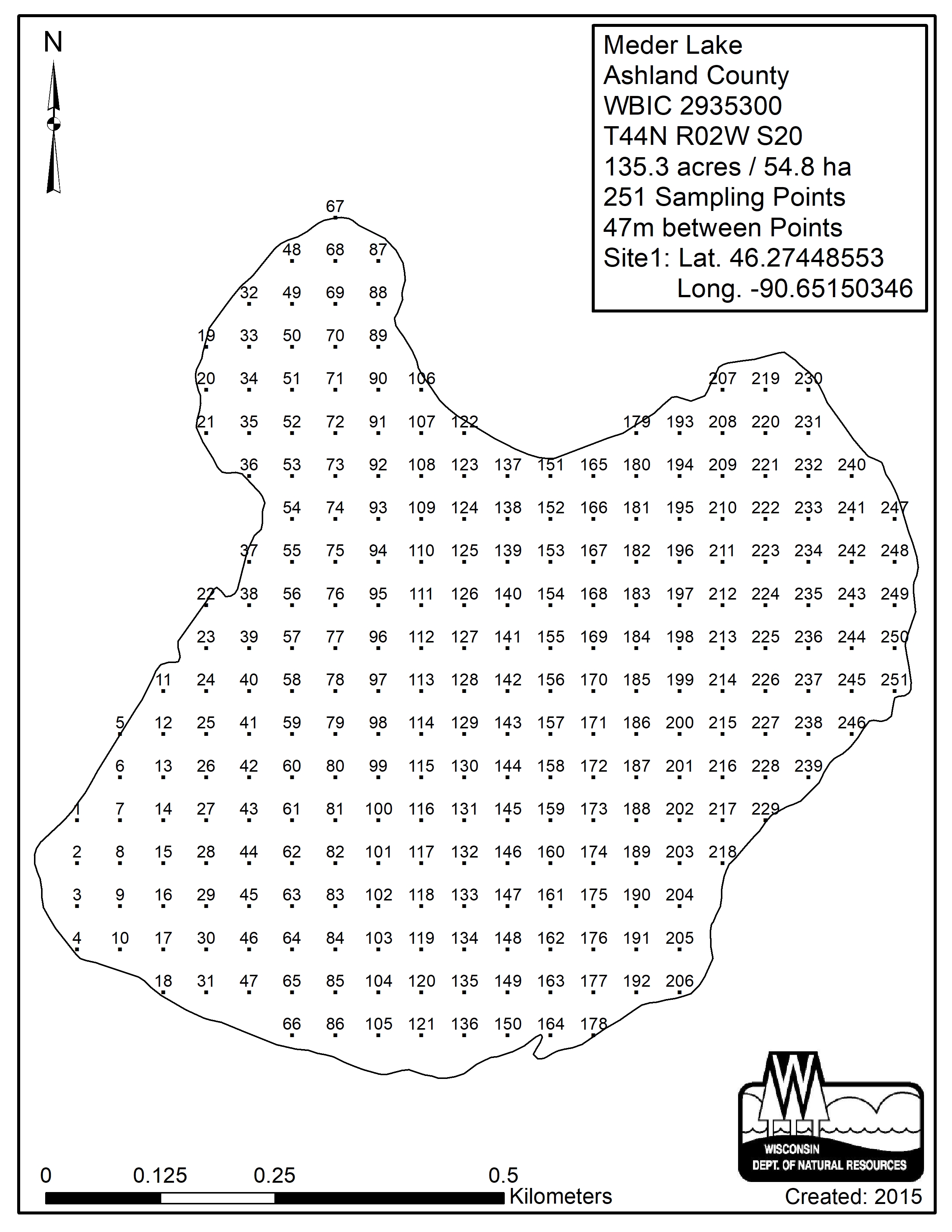 Meder Lake, Ashland County - Aquatic Plant Sampling Map (47 mpts)