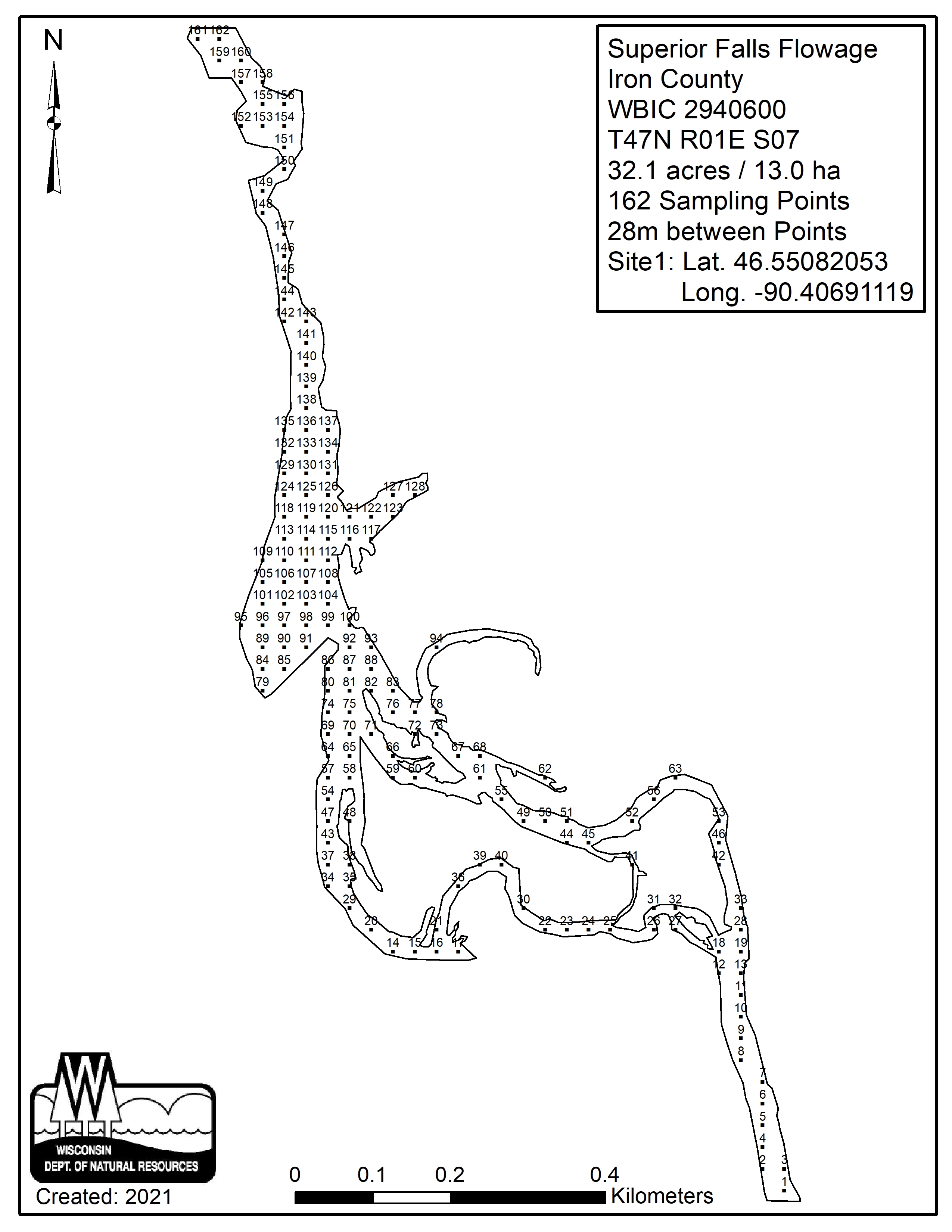 Superior Falls Flowage, Iron County - Aquatic Plant Sampling Map (28 mpts)