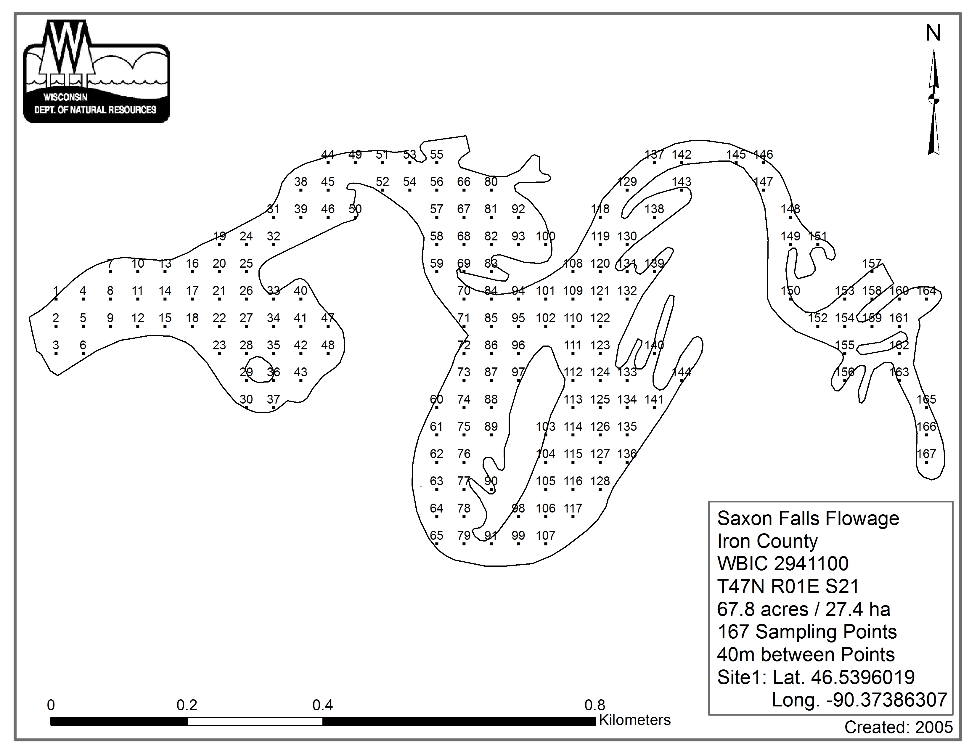 Saxon Falls Flowage, Iron County - Aquatic Plant Sampling Map (40 mpts)