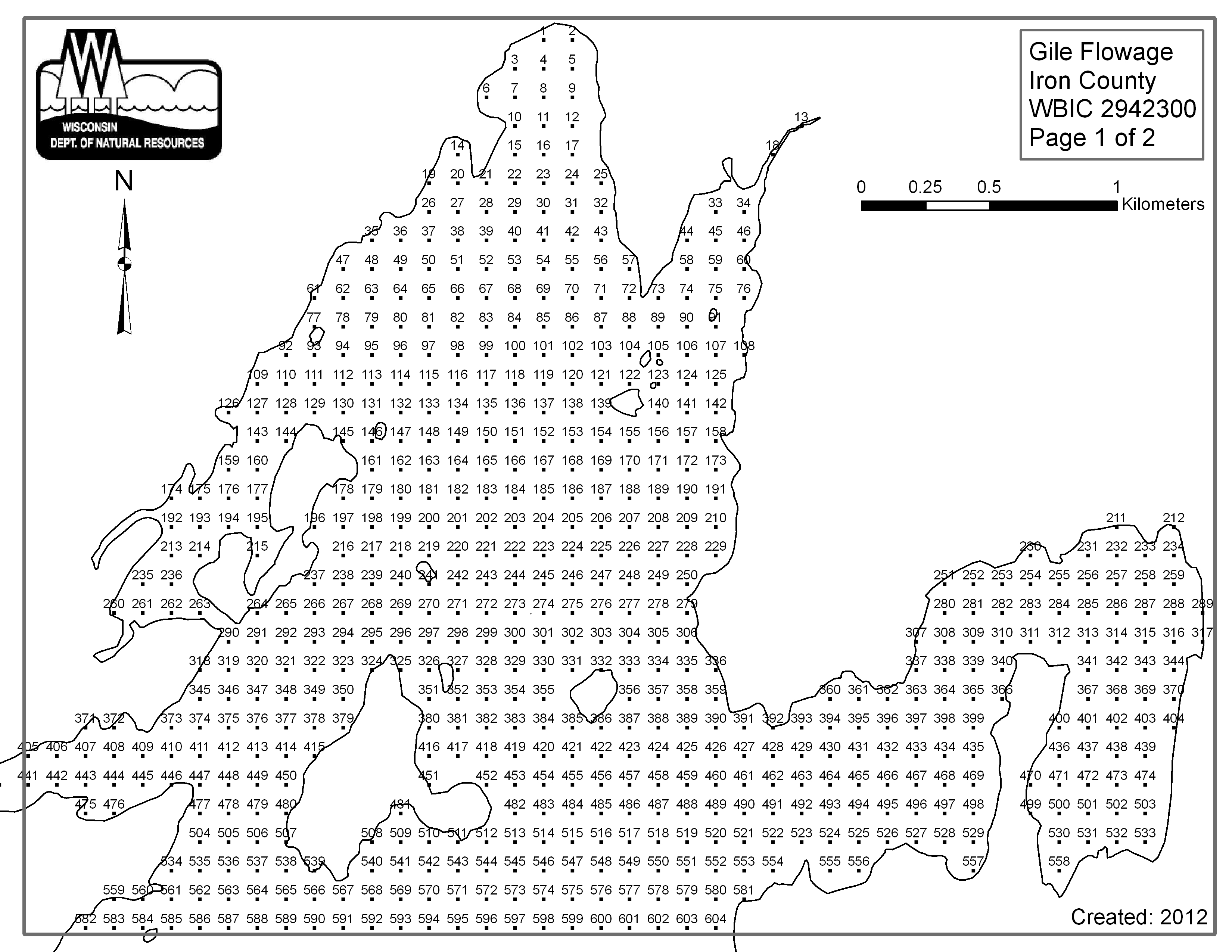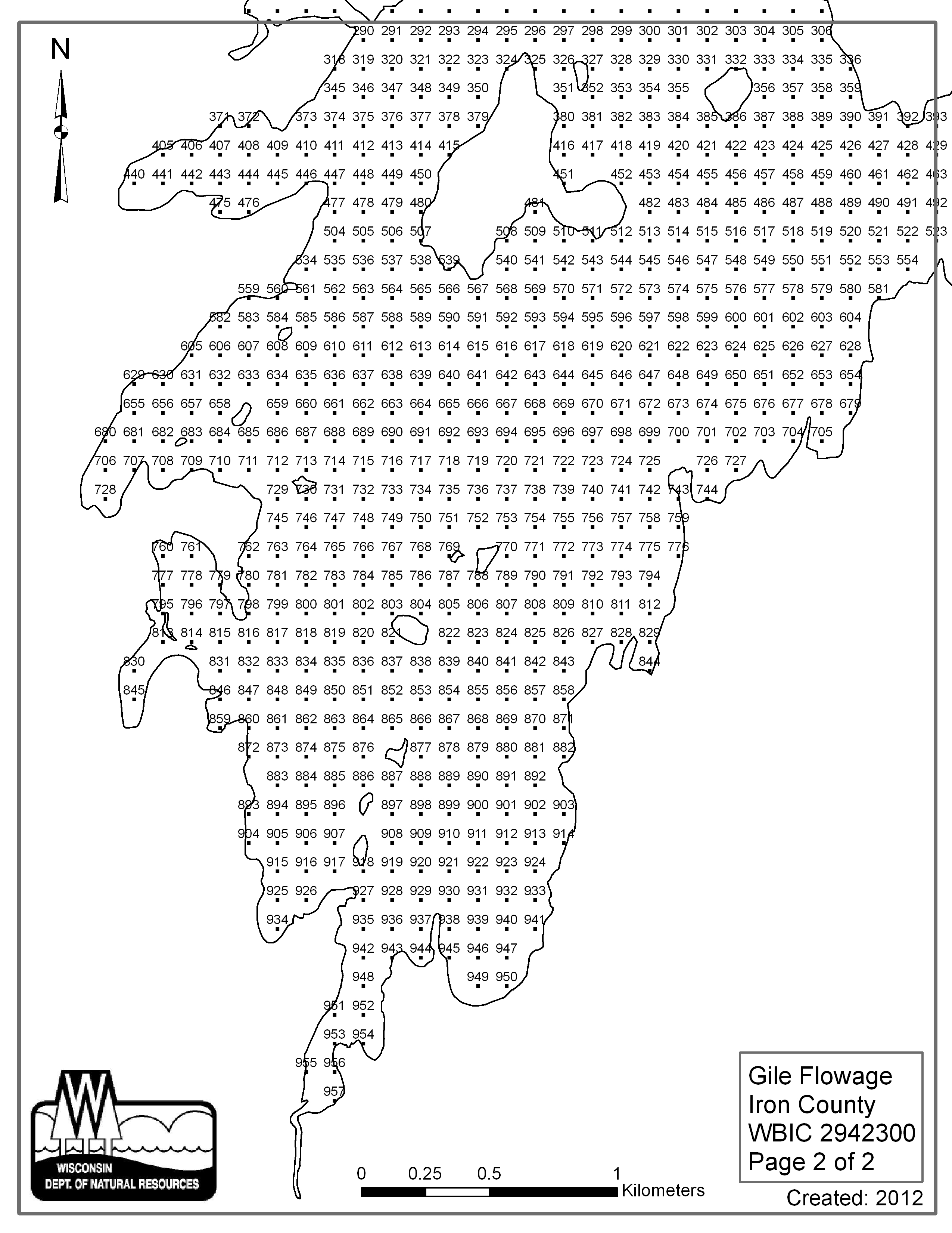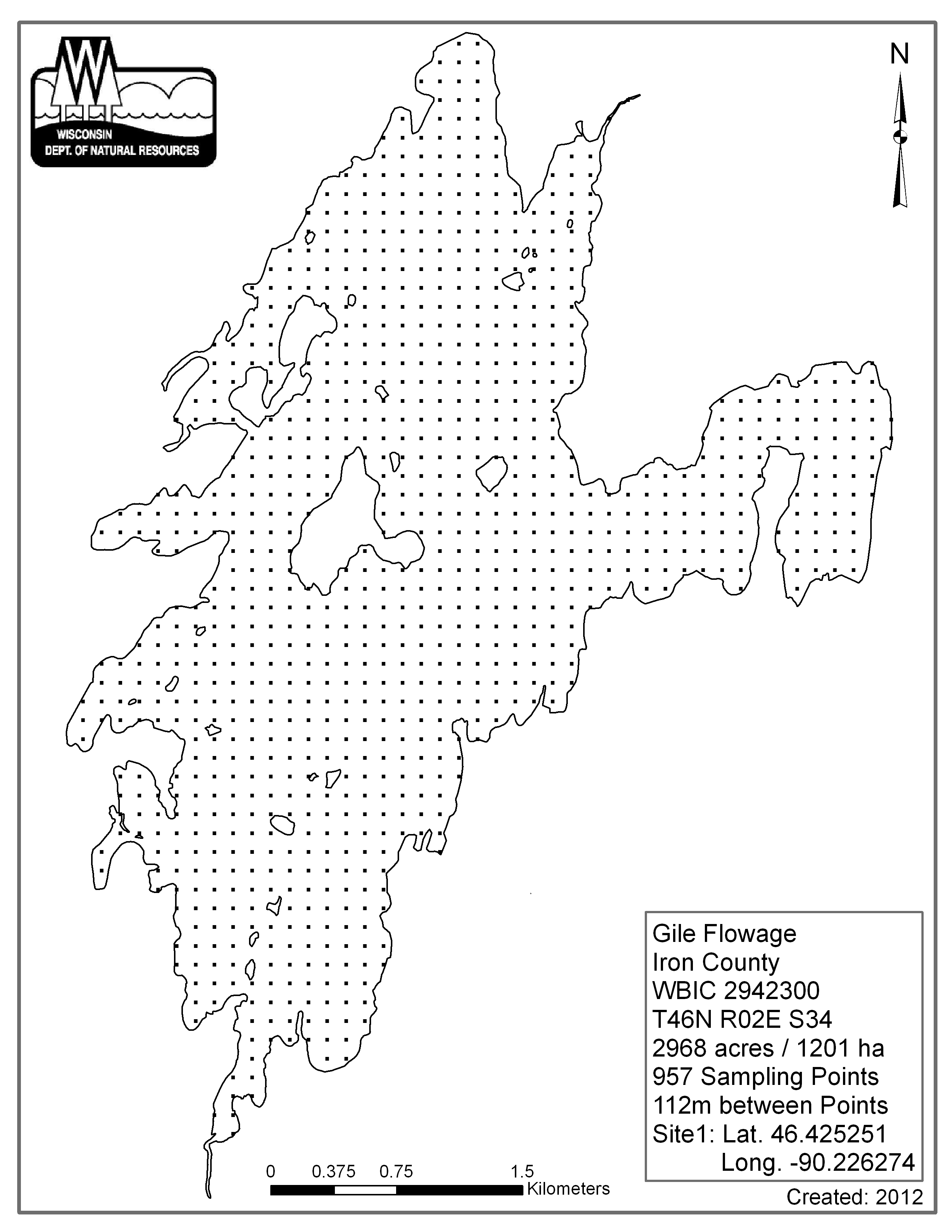 Gile Flowage, Iron County - Aquatic Plant Sampling Map (2)(112 mpts)